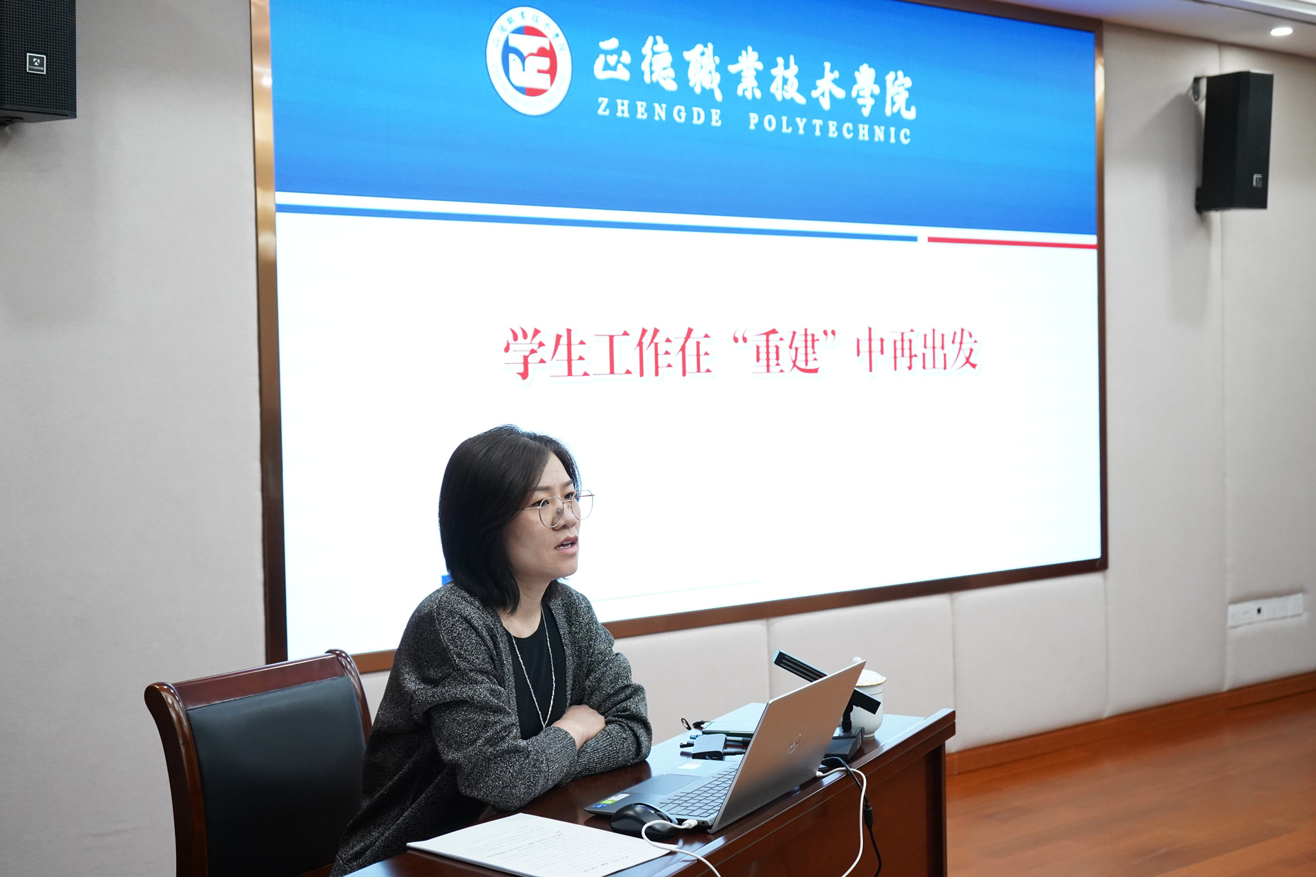 祝佳俊从思想政治教育、学风建设、心理健康教育、就业创业工作、学工队伍建设五个方面回顾了上学期学生工作的开展情况以及不足和改进方向,并对2023年春季学期学生教育管理工作进行重点部署。