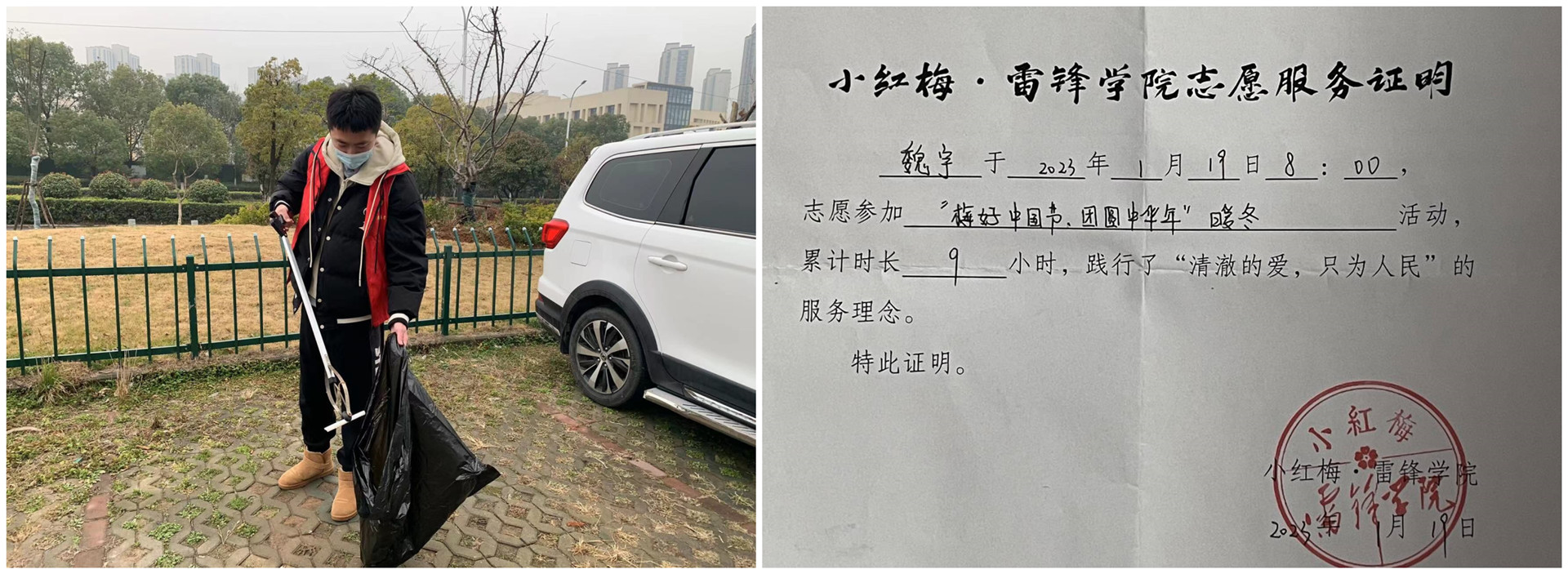 多名学生充分发挥青年志愿者的积极作用,持续深入开展“捡垃圾,促环保”志愿服务活动,大力弘扬“奉献、友爱、互助、进步”的志愿者精神。