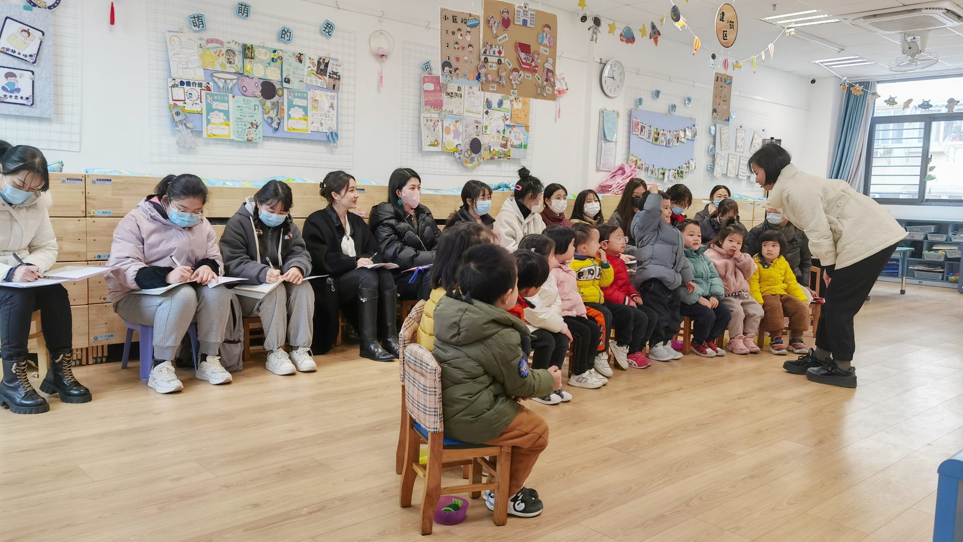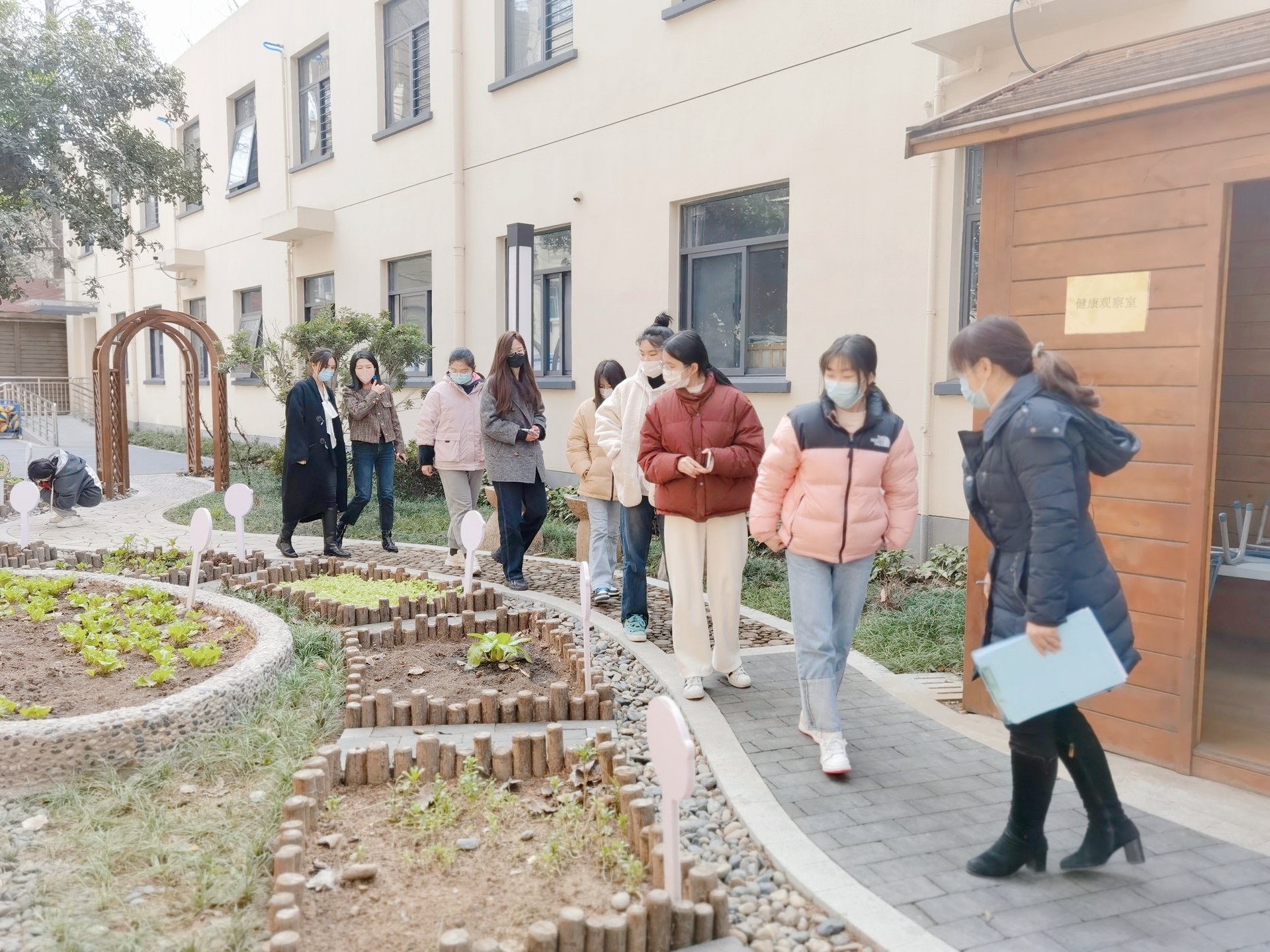 学生们首先参观了幼儿园的教室及配套设施,随后观摩了小班语言活动《好喝的汤》、中班数学活动《找座位》、中班美术活动《线描画-树叶穿新衣》以及中班科学活动《山芋》4节教学活动。