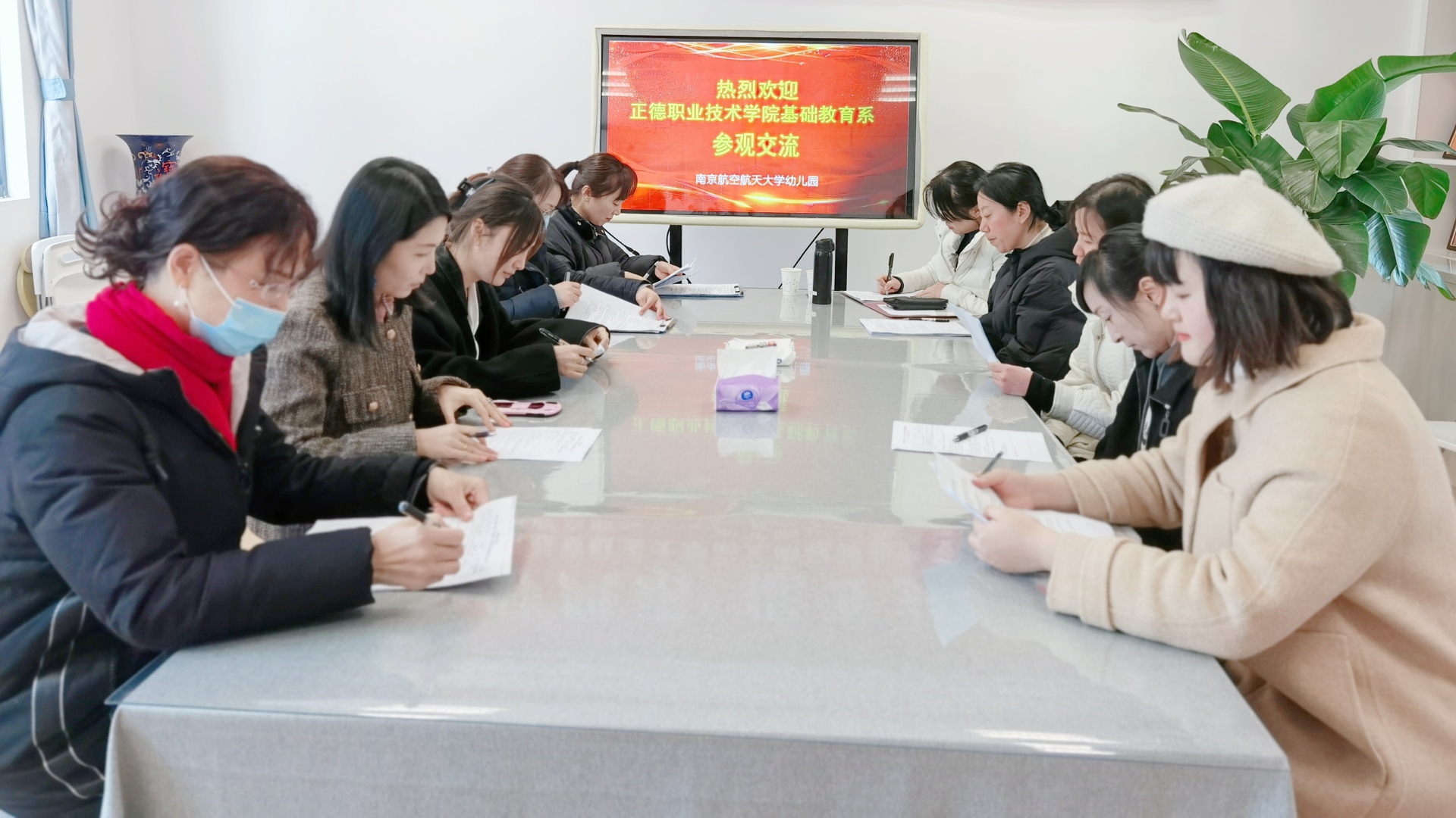 南京航空航天大学幼教中心主任陈慧云对孟馨一行表示热烈欢迎,并介绍了本次“航幼杯”教学竞赛概况,孟馨向南航大幼儿园对基础教育系人才培养的大力支持表示感谢,双方就校企合作展开深度交流。