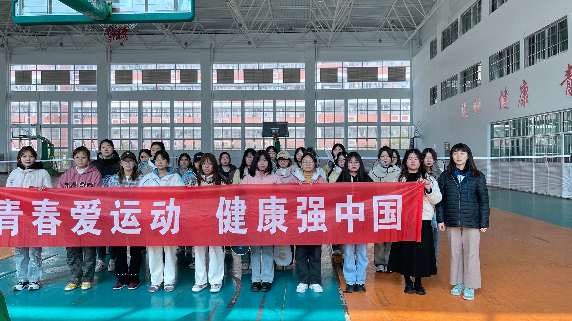 阳光正好,微风不燥,青春的气息随风而至。按照《“健康中国2030”规划纲要》和《中长期青年发展规(2016—2025年)》有关要求,着力提高大学生的身体素质,基础教育系团总支于2月25日在运动馆组织开展“青春爱运动 健康强中国”为主题的羽毛球比赛。本次活动旨在鼓励同学们养成良好的运动习惯,帮助同学们在体育锻炼中增强体质、挑战自我、锤炼意志。