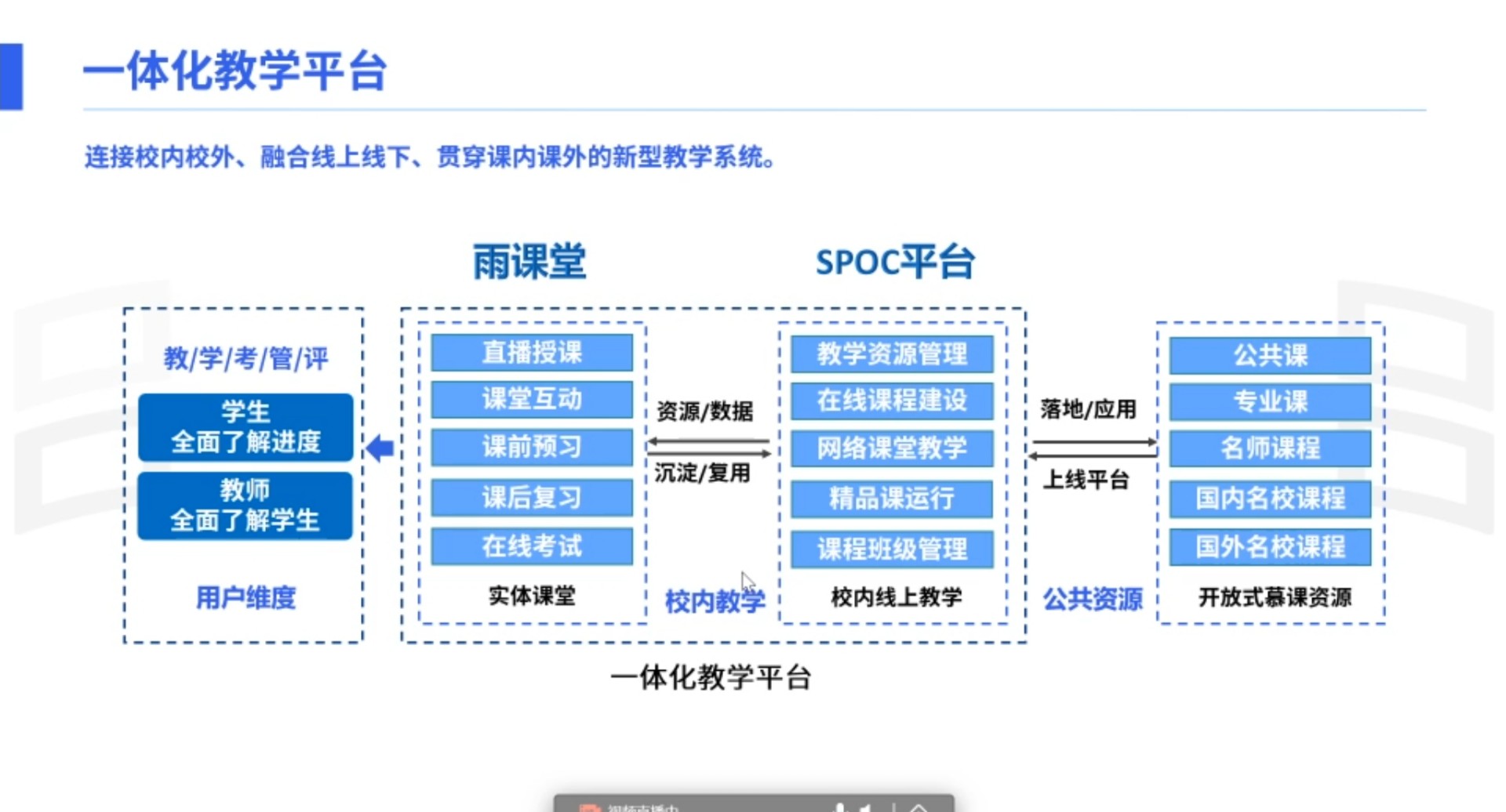主题为“长江雨课堂助力线下课堂教学”的培训详细介绍了长江雨课堂6.0版本新功能:课堂报告解析、音视频直播、多画面并存教学等功能;主题为“如何进行在线课程的创建与应用”“基于一体化平台开展新学期的智慧教学”的培训着重介绍了雨课堂学堂云一体化平台:如何使用学堂云进行课程资源建设、利用雨课堂进行线上线下的教学设计和使用“雨课堂+学堂云”实现线上线下教学一体化。