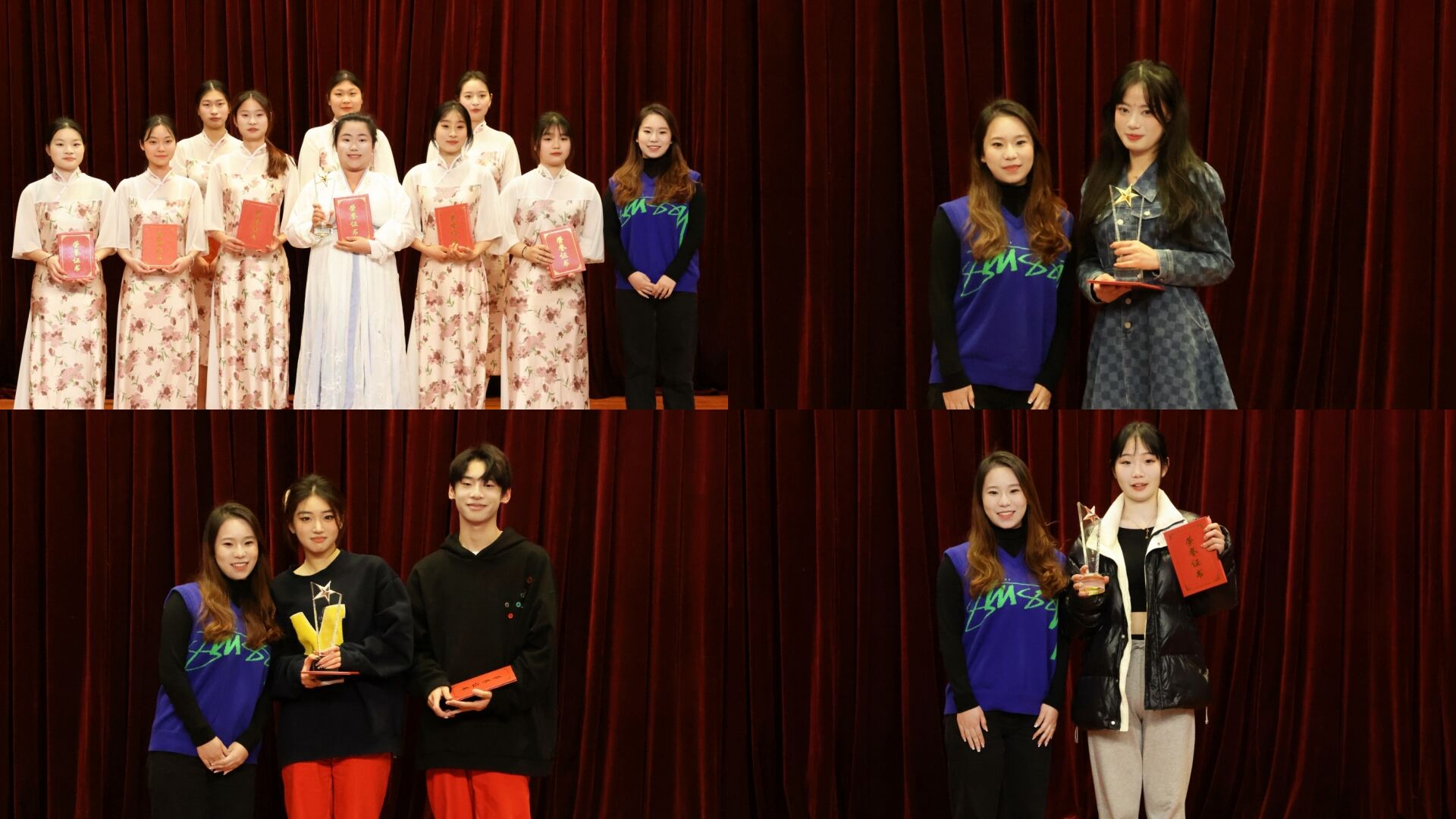 经过由评委团综合打分过后,基础教育系217105班古典舞《人间烟火》荣获团体一等奖,汽车与机电工程系童话同学的民族舞《美人关》荣获个人一等奖,民用航空系赵佳艺、张鑫同学的现代舞《陨星》荣获个人二等奖,基础教育系严许洋同学的当代舞《陷阱》荣获个人三等奖,院团委俞婧童老师为获奖同学颁奖。