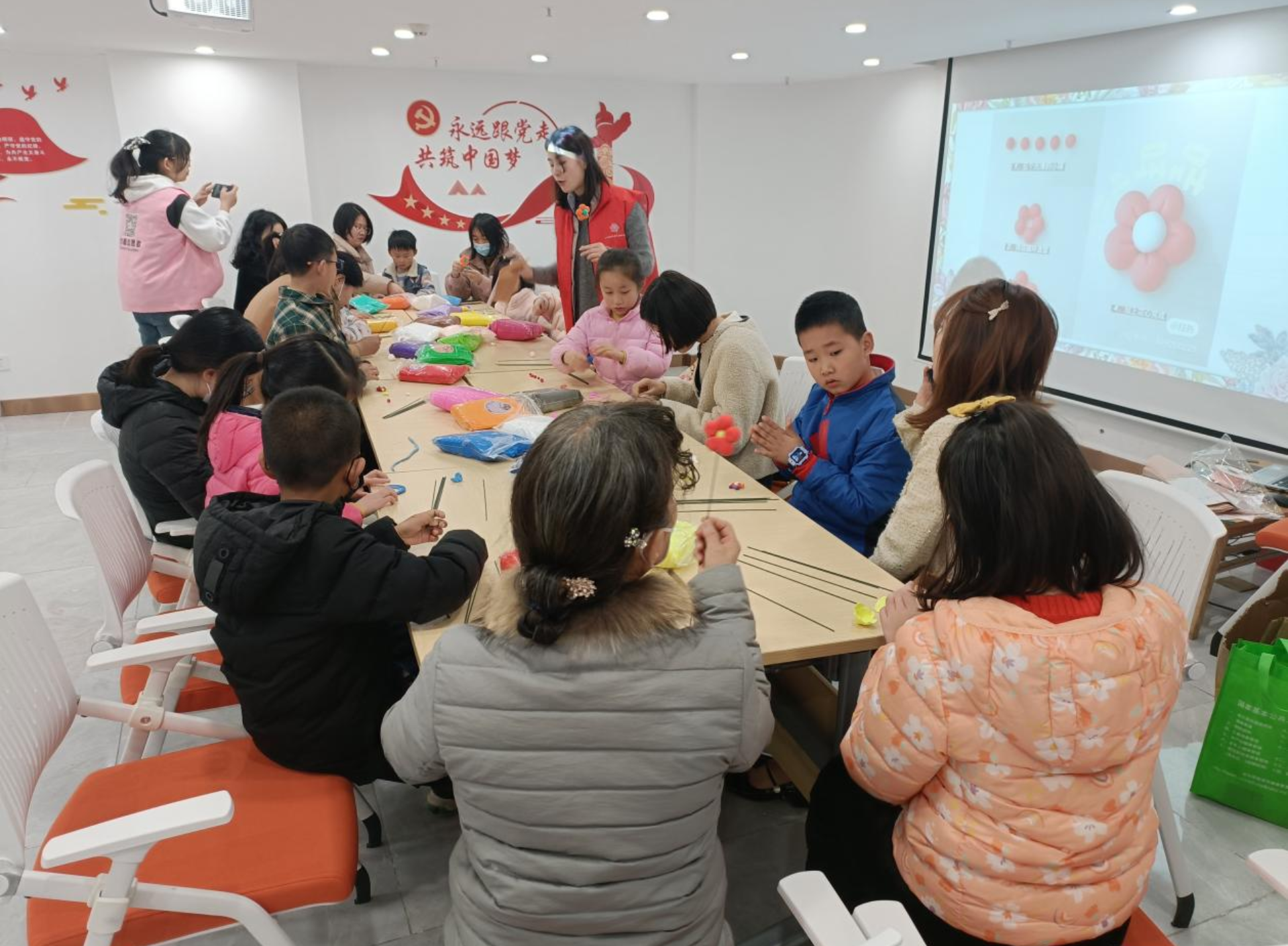在现场,家长还带着孩子们一起体验了粘土花朵的制作。