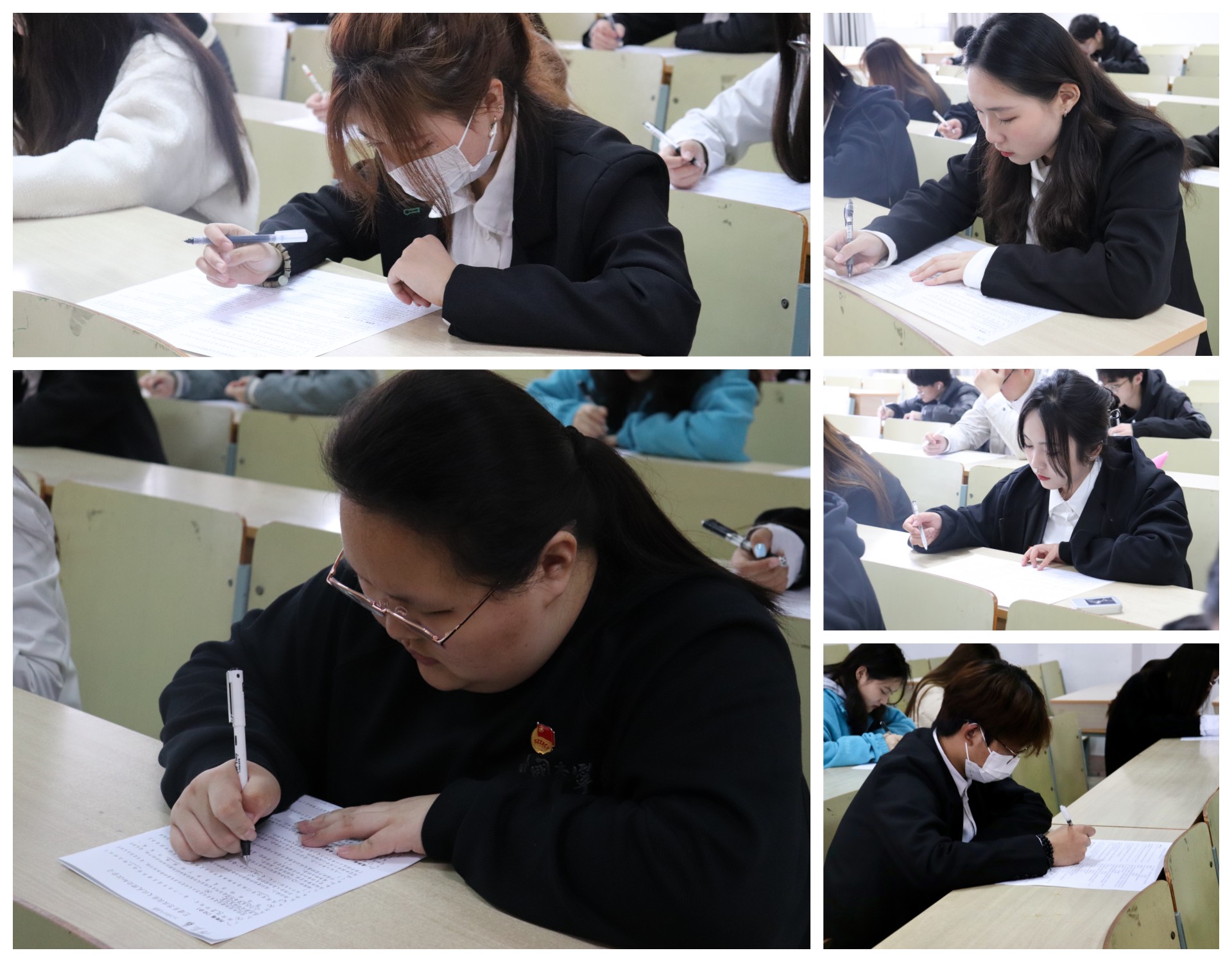 此次团支书思政大比武共两个流程,首先是大一大二的团支书们参加党的二十大报告基础知识党章、团章,基础知识的理论测试,集中进行笔试测试,重点考察基层团支部书记的理论水平和工作能力,本次测试既是对各团支书们理论知识学习的一次考察,更是对党的二十大精神学习成果的巩固和提升,全体团员通过测试找准短板、查缺补漏,进一步加深了对党的二十大精神的理解和把握,达到了以考促学、以学促用的目的。