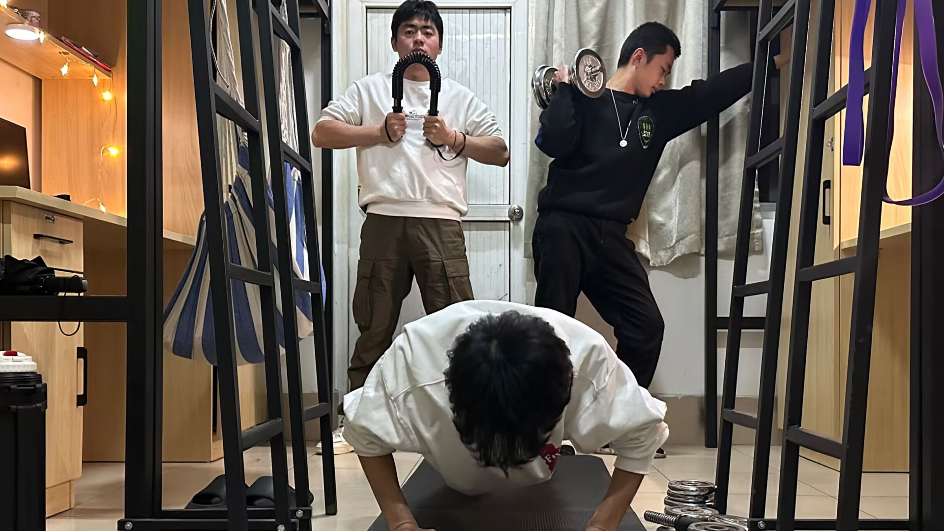 另外,在“寝室时光胶囊拍摄大赛”环节,各位学生也是八仙过海、各显神通,拿出看家本领,一展风采。既有深情的吉他弹唱,又有热血沸腾的健身实况等等,所有学生活力四射,用自己的方式展示着寝室独有的风格。