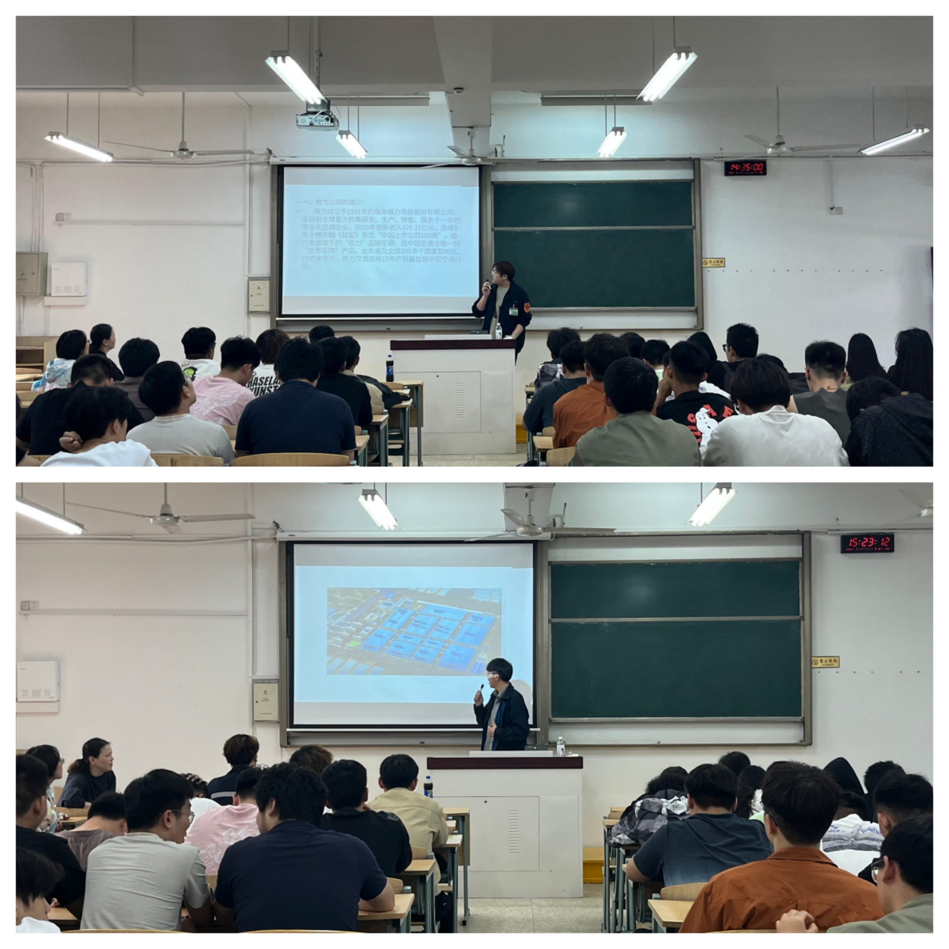 珠海格力电器股份有限公司成立于1989年,位于广东省珠海市,是一家以从事通用设备制造业为主的企业,现已发展成为多元化、科技型的全球工业制造集团,产业覆盖家用消费品和工业装备两大领域,产品远销160多个国家和地区,主营空调、生活电器、手机等产品。徐宇峰与孙博文便是格力电器年轻一代的佼佼者。他们建议当代大学生要从各种渠道全方位提升学生核心素养,拓展眼界,灵活思维,学会自主性、探究性地学习。总结了自己在格力任职的期间的收获,他们以过来人的口吻告诫学弟学妹要学会总结,吸取教训,经过自我全方面的探索及对所处的环境的探索,对自己的未来定向更加明确。要多参加社会实践活动,锻炼能力,提高工作技巧和管理能力。做好时间规划,落实学习过程,向理想的人生冲刺。