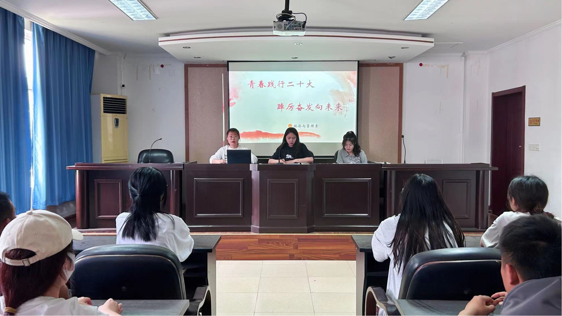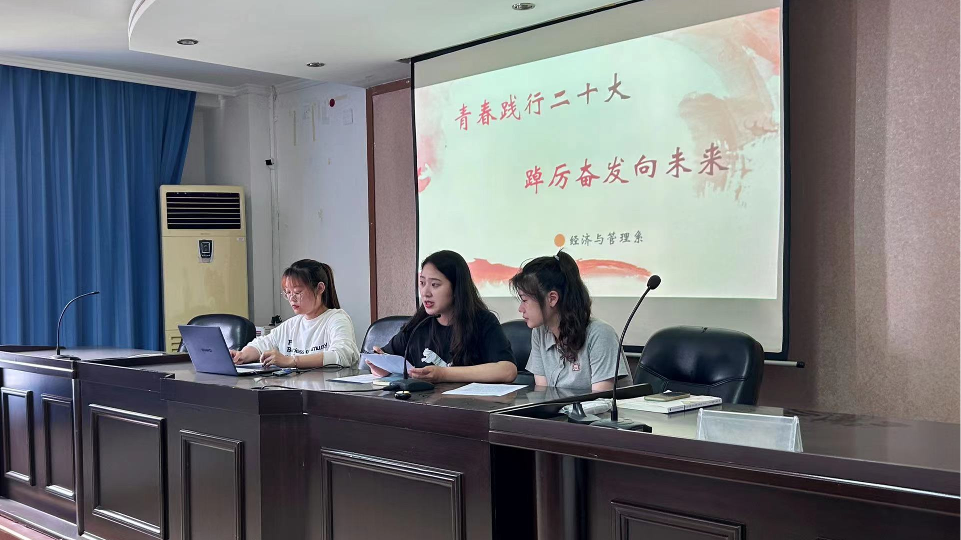 为深入学习贯彻习近平新时代中国特色社会主义思想和党的二十大精神,认真学习领会习近平总书记重要讲话精神,带动全团、引领青年坚定捍卫“两个确立”、坚决做到“两个维护”,为强国建设、民族复兴作出青春贡献,4月21日,经济与管理系开展“青春践行二十大,踔厉奋发向未来”主题团日活动。