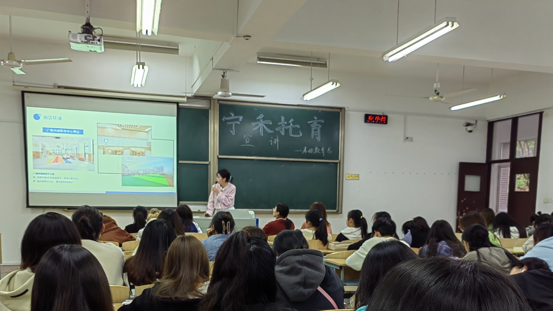为做好2021级学生岗位实习工作,进一步加强校企合作,为学生求职和用人单位招聘搭建平台,促进学生与企业之间的双向选择。基础教育系于2023年4月23日下午在9207教室,举办天博体育 企业宣讲会。本次宣讲会邀请校企合作单位宁禾托育机构负责人来校为即将走入实习岗位的学生提供近距离了解企业的机会。