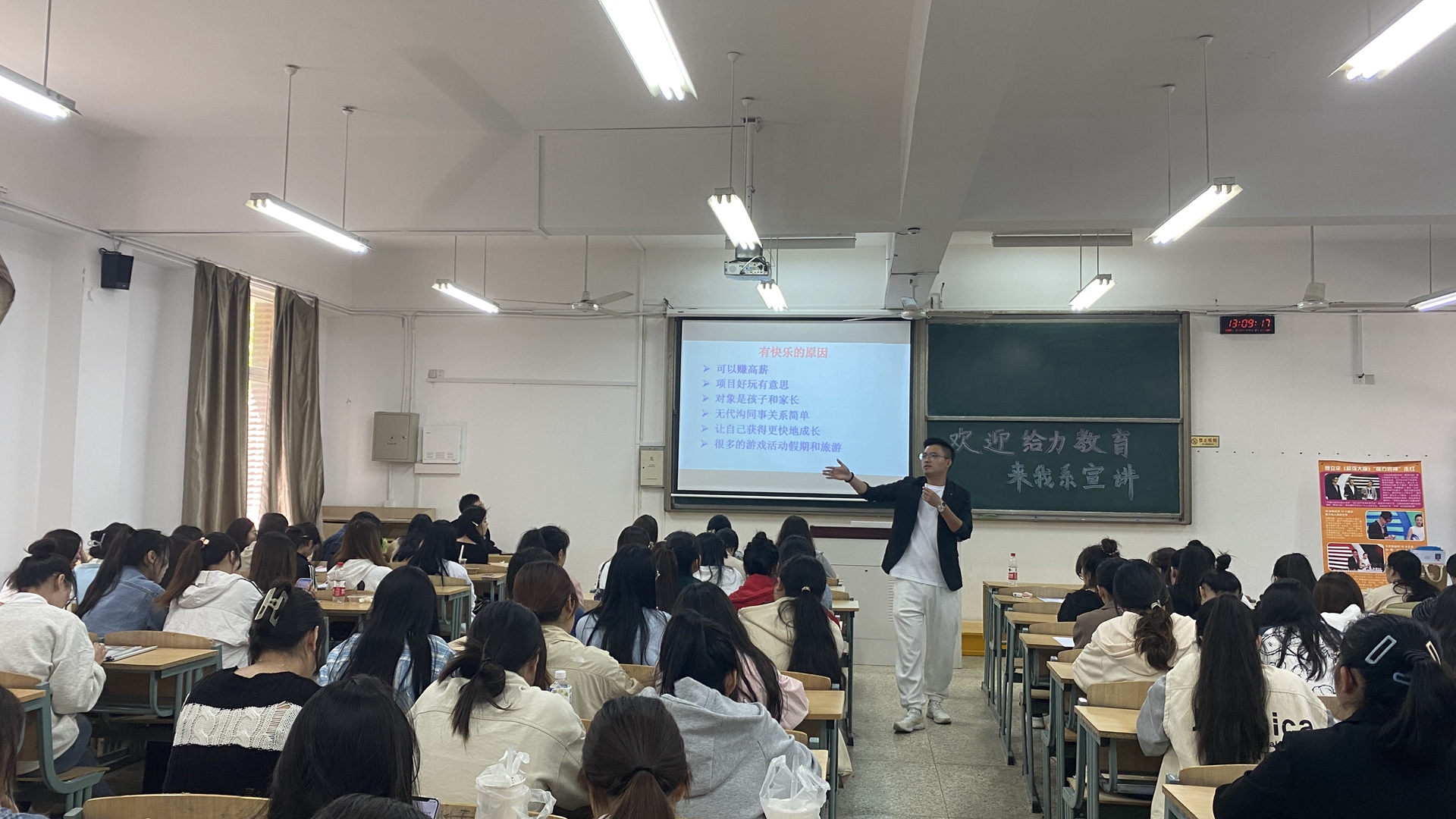 2023年4月23日,基础教育系邀请校南京给力艺术培训有限公司走进天博体育 ,在9108教室进行企业宣讲。2021级婴幼儿托育服务与管理专业全体学生参加,此次宣讲会给予即将面临实习的学子们一个近距离了解企业的机会。