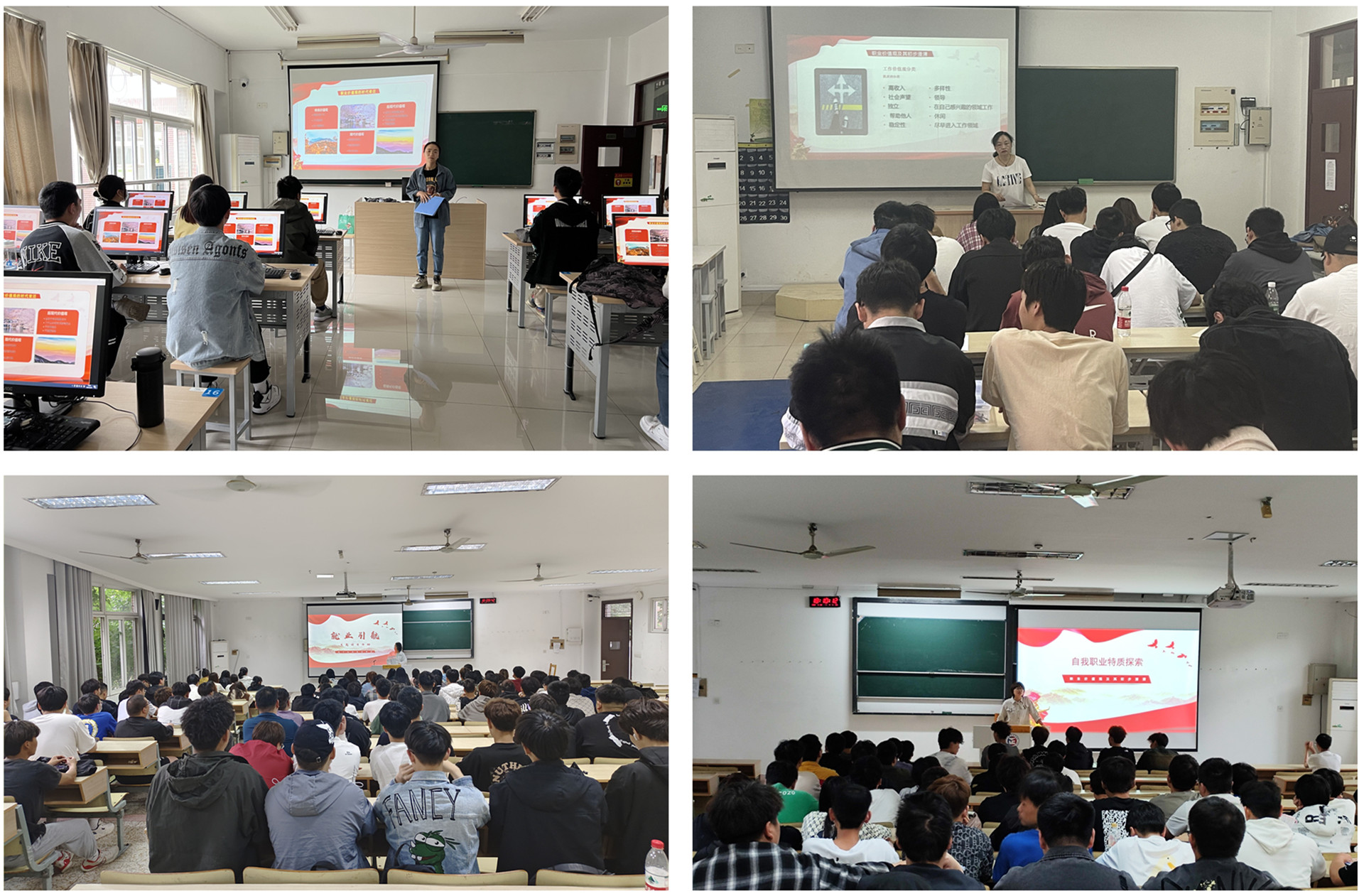 本次活动由电信系辅导员组织各团支部同学进行宣讲。大一辅导员主要帮助学生强化就业意识、初步明确就业发展方向;大二辅导员重点帮助学生提升对个人价值观、职业发展规划等方面的理性认识;大三毕业生团支部重点帮助学生把握就业方向、提升就业能力。活动过程中,辅导员及专业课老师就当代大学生的就业现状和对社会各职业分享自己的看法和思考,并提出大学生应该树立正确的择业观和职业观,在面对工作机会时应该脚踏实地、积极进取。