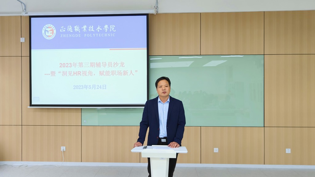 为进一步做好天博体育 毕业生就业工作,帮助辅导员更好了解职场环境与就业要求,提升就业指导能力。2023年5月24日下午,学生处在9205教室举办了“洞见HR视角,赋能职场新人”的就业指导专题讲座。江苏领航集团天博体育 事业部总经理周建政担任主讲嘉宾,学生处副处长张宝华、处长助理罗佳、全体辅导员到场参加,讲座由张宝华主持。