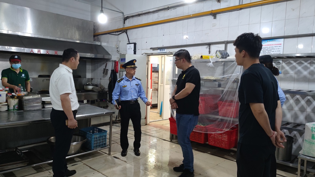 检查组先后开展了各食堂加工区、售卖区、清洗消毒区等区域的检查,认真听取了各食堂负责人对有关工作情况的汇报。检查人员通过实地查看、查阅台账、现场询问等方式,重点检查了食堂食品经营许可资质、环境卫生、食品安全管理台账、原材料进货凭证和餐具清洗消毒等情况,并对管理工作中存在的不足,提出指导意见。