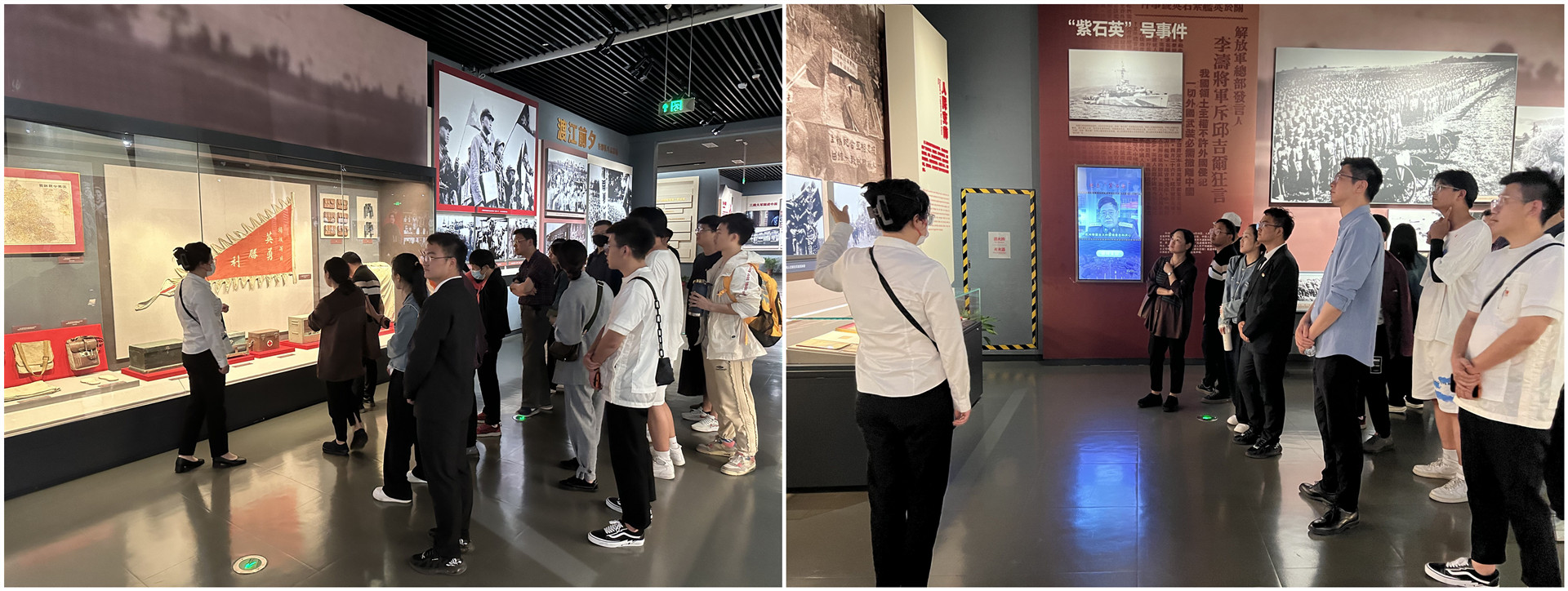 在渡江胜利纪念馆讲解员的带领下,大家参观了“天翻地覆慨而慷——渡江战役胜利暨南京解放展”。展览共包含“运筹帷幄,坚决‘打过长江去’”“决战千里,百万雄师过大江”“军民团结,接管城市开新局”“革命到底, 宜将剩勇追穷寇”和“见证胜利,渡江精神世代传”五个部分,从展厅中陈列的文物、照片与文字中,大家深切感受那段革命历史,深入了解革命先辈的英雄事迹,感受到中国人民解放军在中国共产党的正确领导下,横渡长江解放南京,取得渡江战役胜利的雄壮激荡。