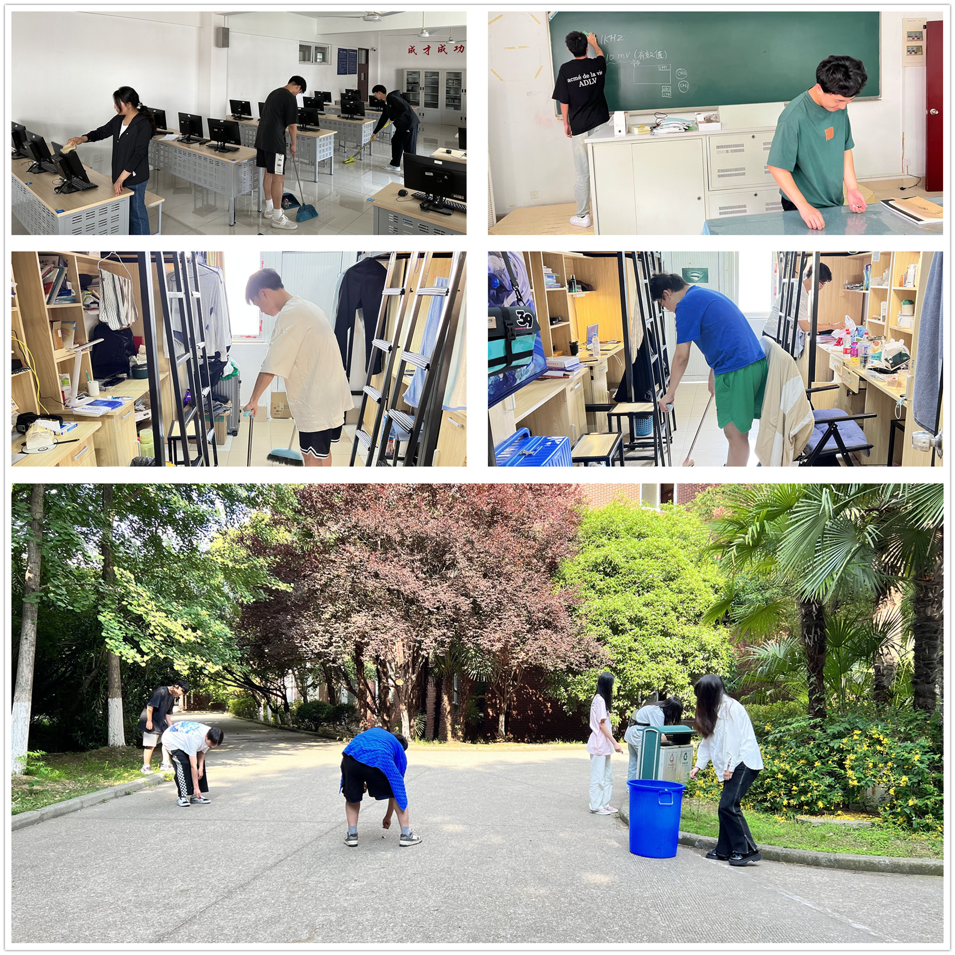 电信系充分发挥学生骨干的示范引领作用,率先行动,以身作则,在六号楼到九号楼学习和工作区域以及专业实训室等设置“包干区”,引导学生利用课余时间对该区域进行定期的卫生清洁及杂物整理,用自己的辛勤汗水为美化天博体育 环境贡献力量。同时,电子与信息技术系通过文明宿舍评选,组织学生对宿舍和公共区域进行卫生大扫除,举办“最美宿舍”评比,彻底清理卫生死角,营造干净整洁、舒适温馨的学习、生活环境。