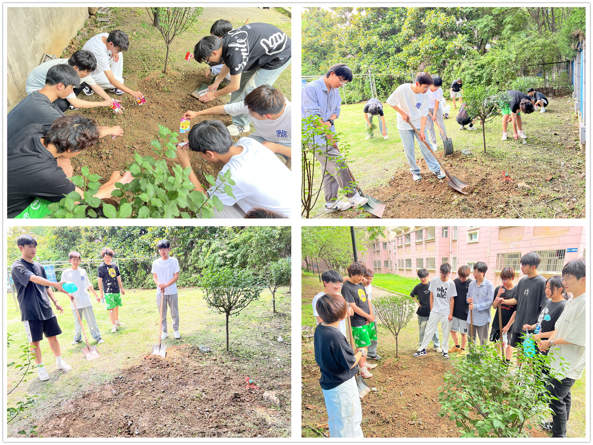 电信系引导学生在北七栋宿舍楼旁的“劳动试验田”上独立进行耕地、播种、除草、驱虫等活动,并与辅导员一同分享全过程,让学生在出力流汗之中、在耕耘劳动果实之后,真切感受到“劳动最光荣,奋斗最幸福”的真谛,助力学生在生活工作中养成良好的习惯。