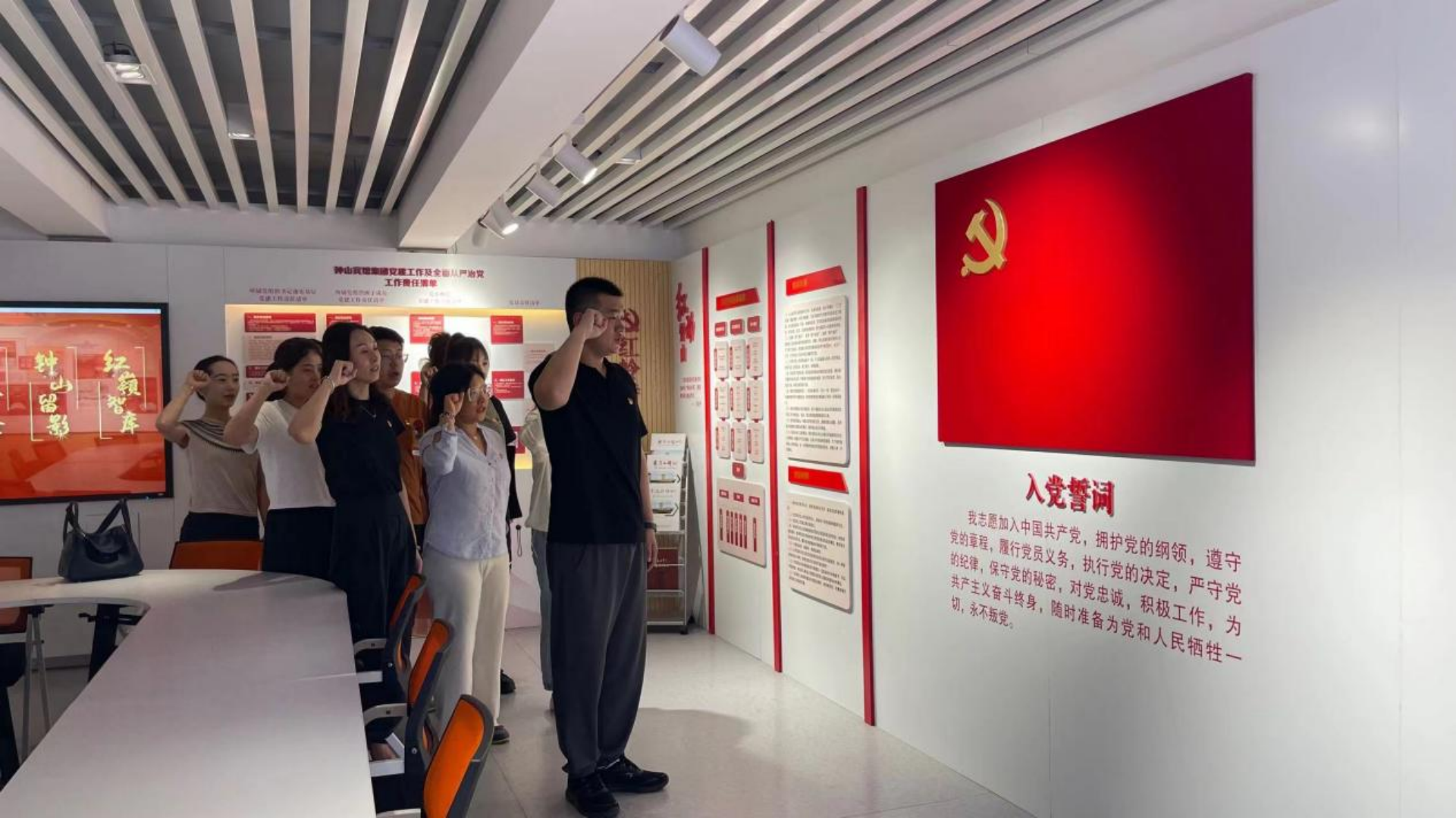 随后,大家跟随讲解员来到了红岭党建中心,“党史长河”以时间轴形式展示了自1919年五四运动以来,中国共产党排除千难万险,带领中国逐步走向繁荣富强的伟大历程。“印象钟山”、“旗帜钟山”、“清风钟山”、“影像钟山”、“感动钟山”等板块展现了钟山宾馆集团近百年的发展历程,党建与经营发展的深度融合。培育了一批具有较强创新性、可推广性的好做法、好经验,形成了以“红岭”钟山为核心的品牌矩阵和党员先锋榜。
