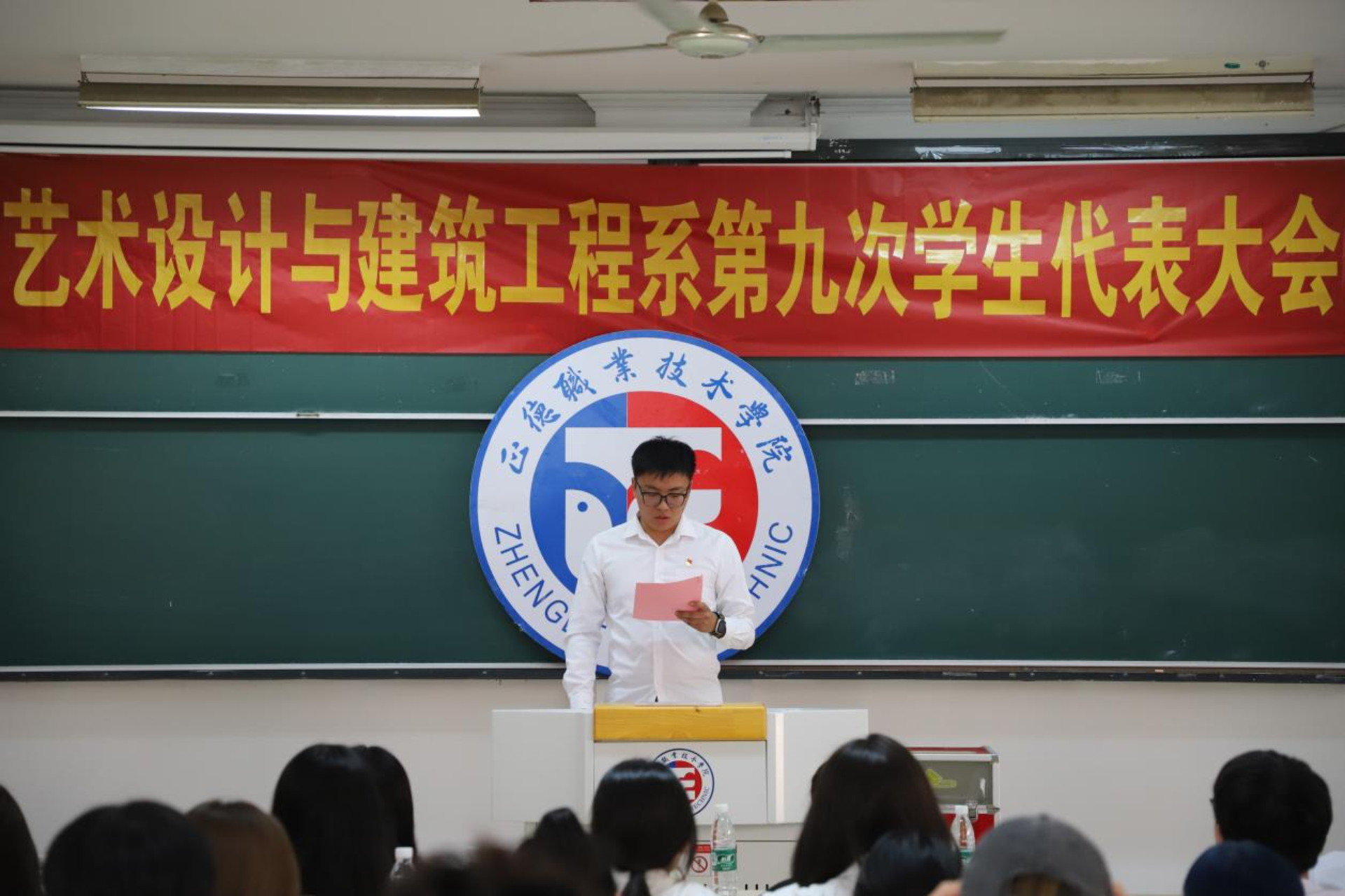 为加强学生干部队伍建设,及时为队伍补充新生力量,选拔一批政治坚定、作风过硬、品学兼优、素质全面的学生干部,2023年6月16日下午17时,艺术设计与建筑工程系第九次学生代表大会在1202教室隆重召开。艺建系团总支书记、大会秘书长崔杰参加此次会议。院学生会代表、各系代表、学生会主席团参加开幕式。