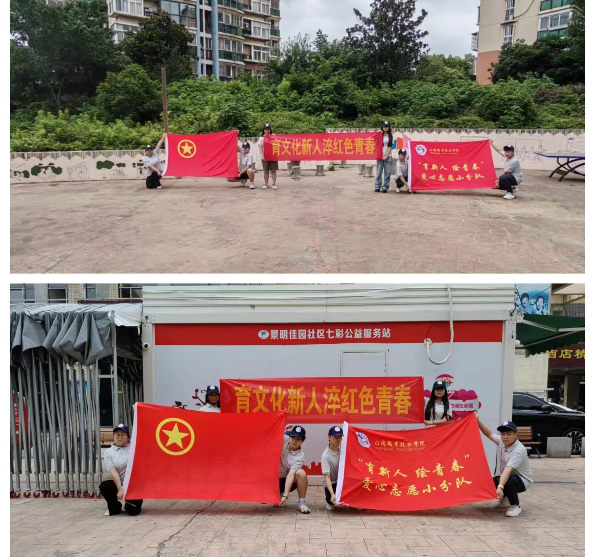 为了进一步学习宣传贯彻习近平新时代中国特色社会主义思想,全面贯彻落实党的二十大精神,深刻领悟习近平总书记同团中央新一届领导班子成员集体谈话的指示精神,引导和帮助广大青年学生在与现实相结合的“大思政课”中“受教育、长才干、做贡献”,引领学生立志做有理想、敢担当、能吃苦、肯奋斗的新时代好青年,激发广大青年在中国式现代化建设中挺膺担当,在校团委的指导带领下,艺术设计与建筑工程系围绕“党建+”建设,在景明佳园社区开展主题社会实践活动。