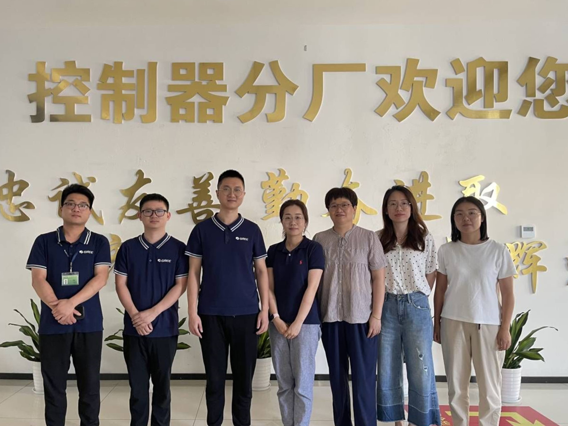 8月7日,电子与信息技术系副主任刘佳(主持工作)带领专任教师朱洁、戴慧、王丹来到格力电器(南京)有限公司控制器分厂开展教师技能专项训练并走访探望实习学生,控制器分厂厂长田楷,工程师胡瀚、颜晶等热情接待刘佳一行。