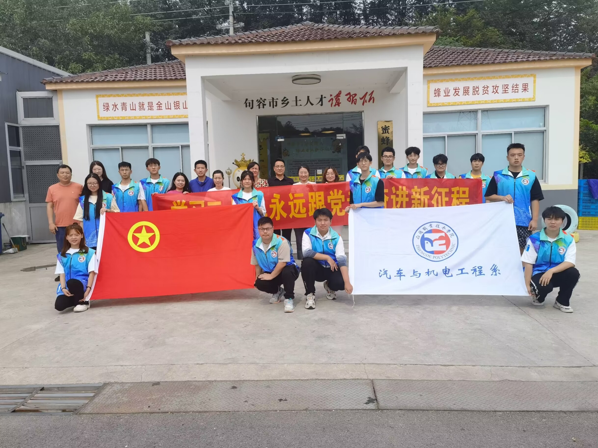 为深学笃用习近平新时代中国特色社会主义思想,打造美丽乡村,发展绿色经济,促进乡村产业振兴,引导和帮助广大青年学生在社会实践中“受教育、长才干、做贡献”。7月10日,汽车与机电工程系暑期社会实践团队15名成员在系主任任丽君、党支部书记朱翔、团总支书记李浩文、21、22级全体辅导员的带领下前往镇江句容蜀镇空青村,走访了健蜂园蜂业合作社,探索“乡村振兴与生态经济”的发展模式。