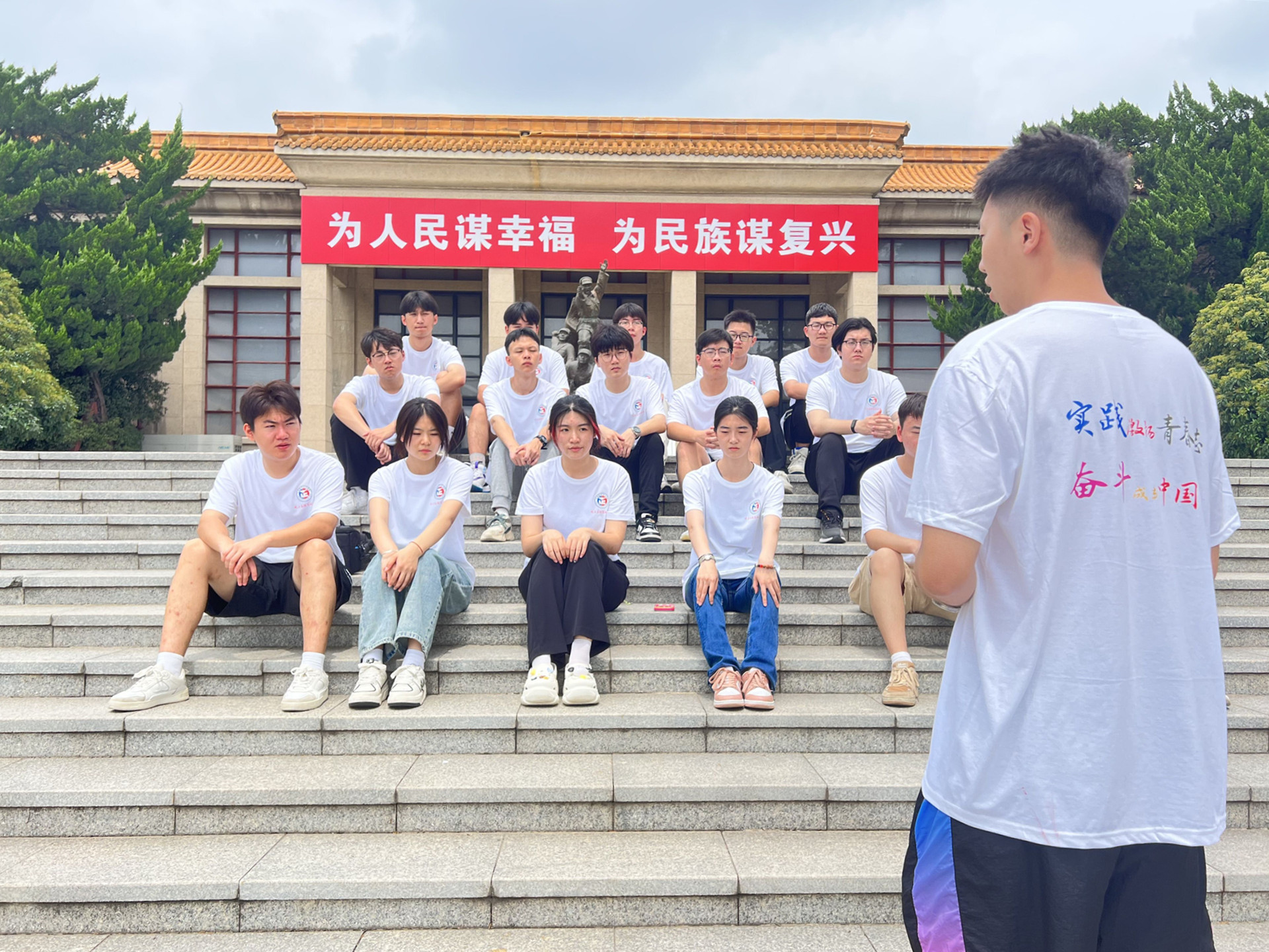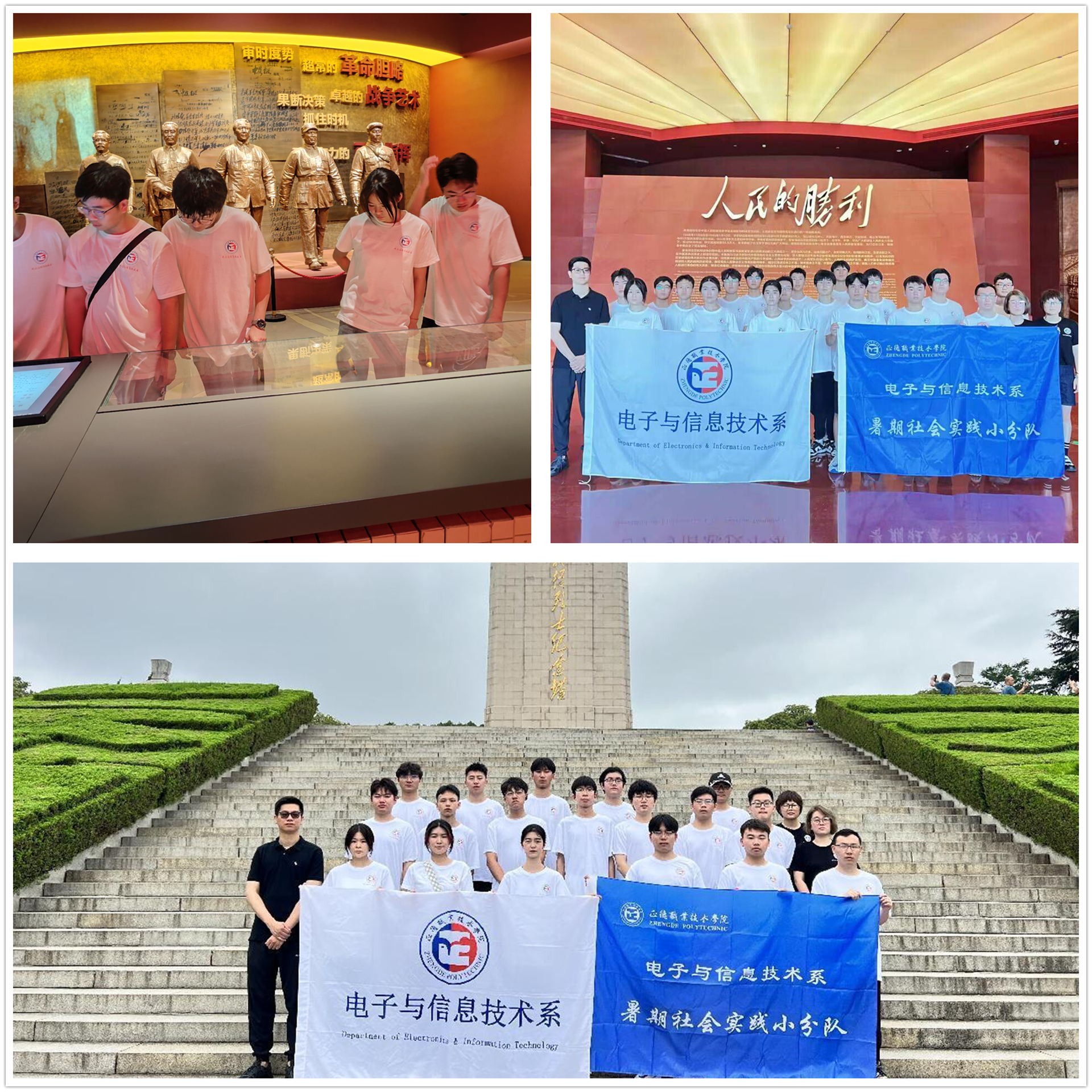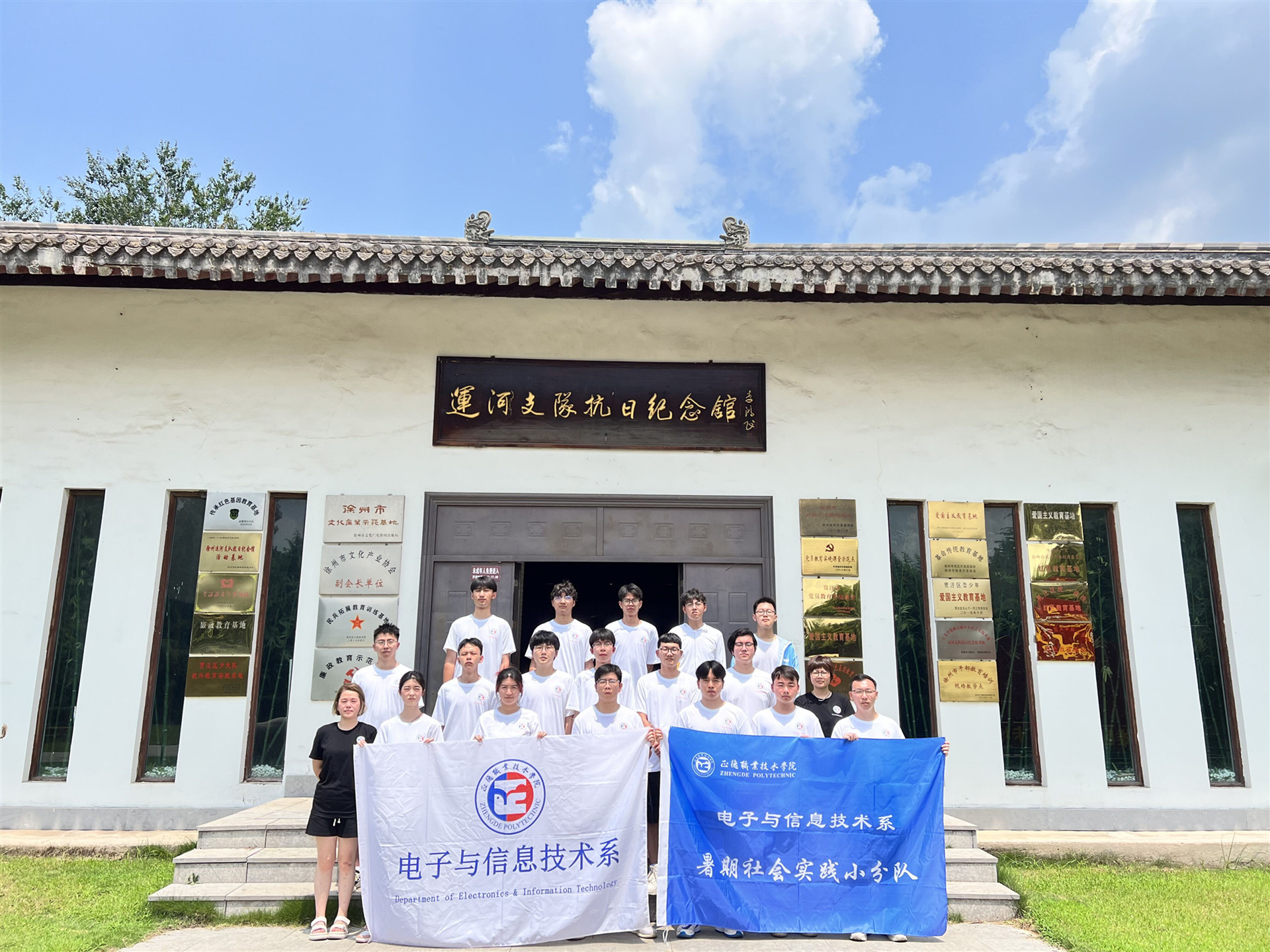 7月21日,实践团在电子与信息技术系党支部书记、副主任赵欣,辅导员王雯、谢雅婷老师的带领下,前往徐州淮海战役纪念馆参观学习,感受抗战时期中华民族不畏强敌、艰苦奋斗、奋发图强的民族精神,进一步深化爱国主义教育。