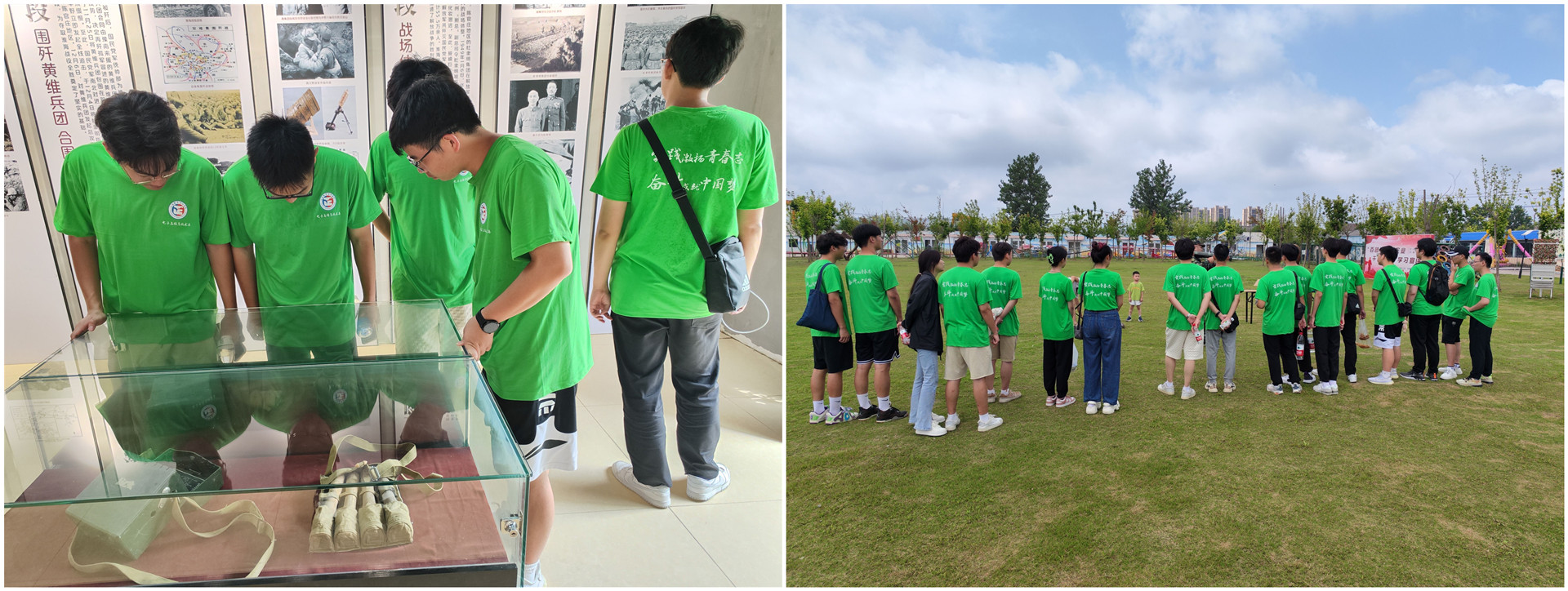 7月22日,实践团前往徐州“秋水湾”国防教育基地,实地参观大型军事装备展、秋水湾红色教育展厅,深入了解抗日战争、解放战争的历史进程及伟大意义,引导学生树立献身国防事业的信心和决心。
