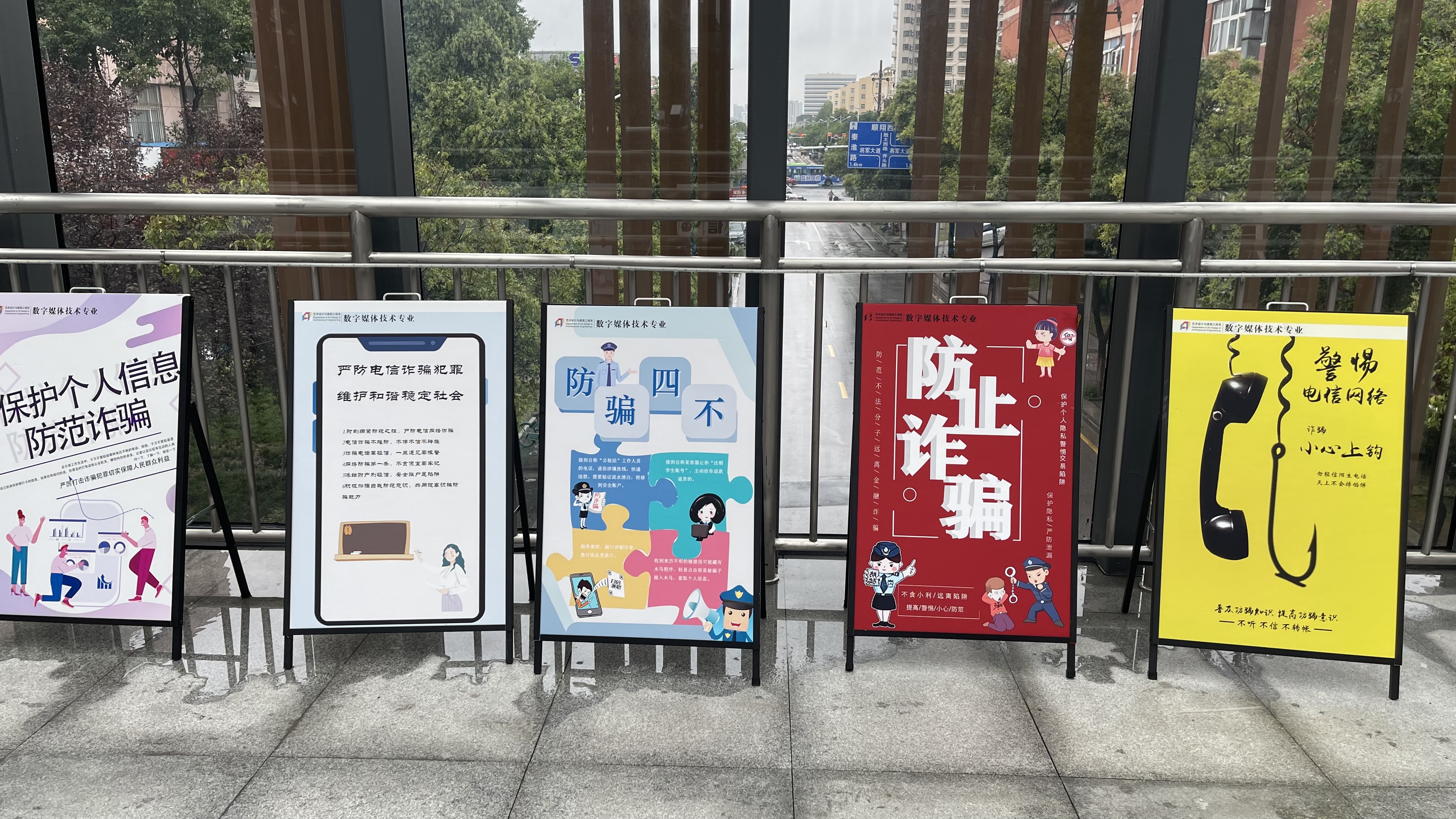 同时为增强大学生反诈意识,保卫处联合艺术设计与建筑工程系于9月11日在天博体育 新建天桥长廊举办了一场以“防诈骗”主题海报设计展,及时向新生宣传防范诈骗的知识,上好开学反诈第一课:“不听,不信,不转账”,筑牢天博体育 安全防火墙。
