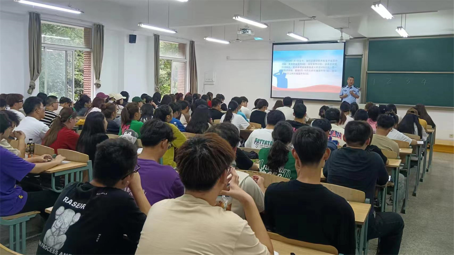 ”。2023年9月11日起,保卫处联合学生处及各系,邀请江宁开发区派出所民警娄警官开设多场“开学第一课,防诈进天博体育