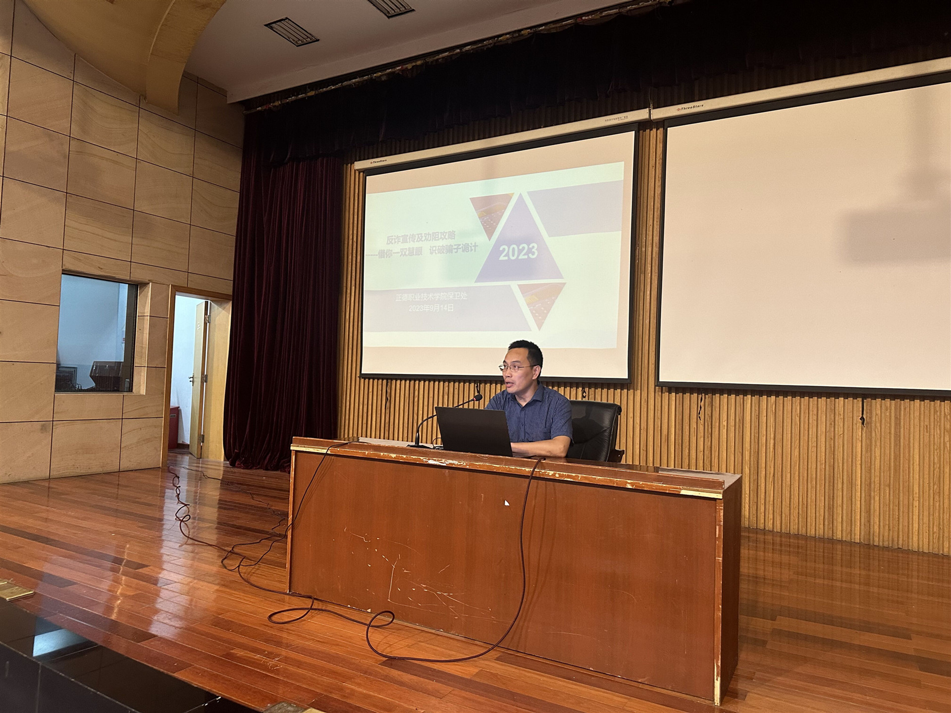 为了提高学生的反诈防诈能力,强化学生的法治观念和自我保护意识,营造平安、文明、和谐天博体育 ,9月14日晚,电子与信息技术系邀请天博体育 保卫处副处长丁胜为2023级新生讲述了一堂生动的反诈防骗讲座。