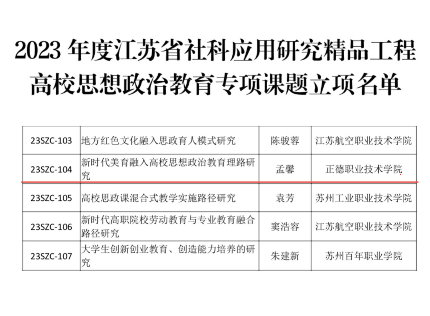 近日,江苏省哲学社会科学界联合会公布了2023年度江苏省社科应用精品工程思想政治教育专项课题立项名单,天博体育 基础教育系教师孟馨主持申报的《新时代美育融入高校思想政治教育理路研究》获批立项。该课题以“美育课程”为着力点,致力于在课程教学中不断提高学生的审美与人文修养,为推进天博体育 美育教育与实践高质量发展积极贡献力量。