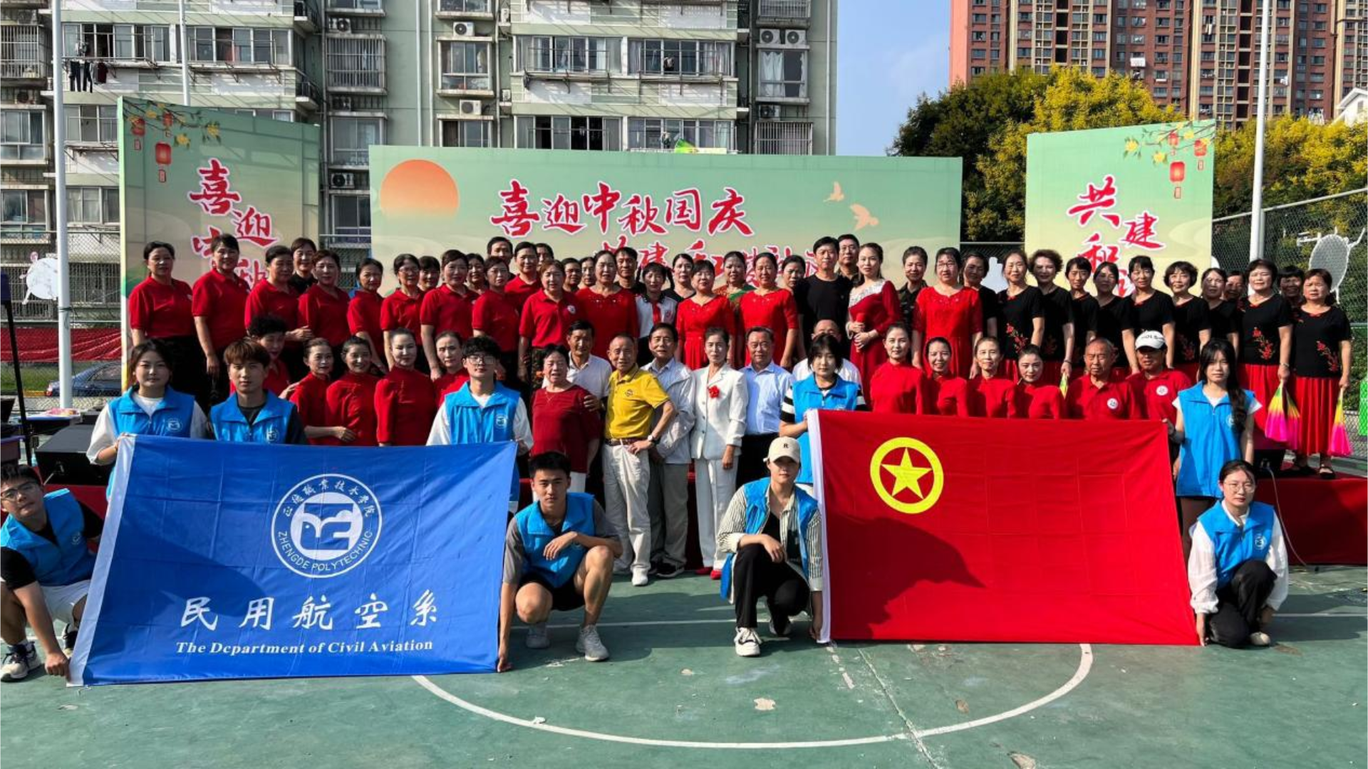 根据《关于进一步深入开展高校大学生团员青年“社区有我 青春报到”行动的实施意见》相关要求,民用航空系将“社区有我 青春报到”行动和南京市秣陵街道青源社区文艺演出结合。9月20日,南京市江宁区秣陵街道青源社区新时代文明实践站联合秣陵街道蓬勃艺术团举办了一场文艺演出活动。民用航空系11名志愿者走进社区,和社区居民一起庆祝节日。