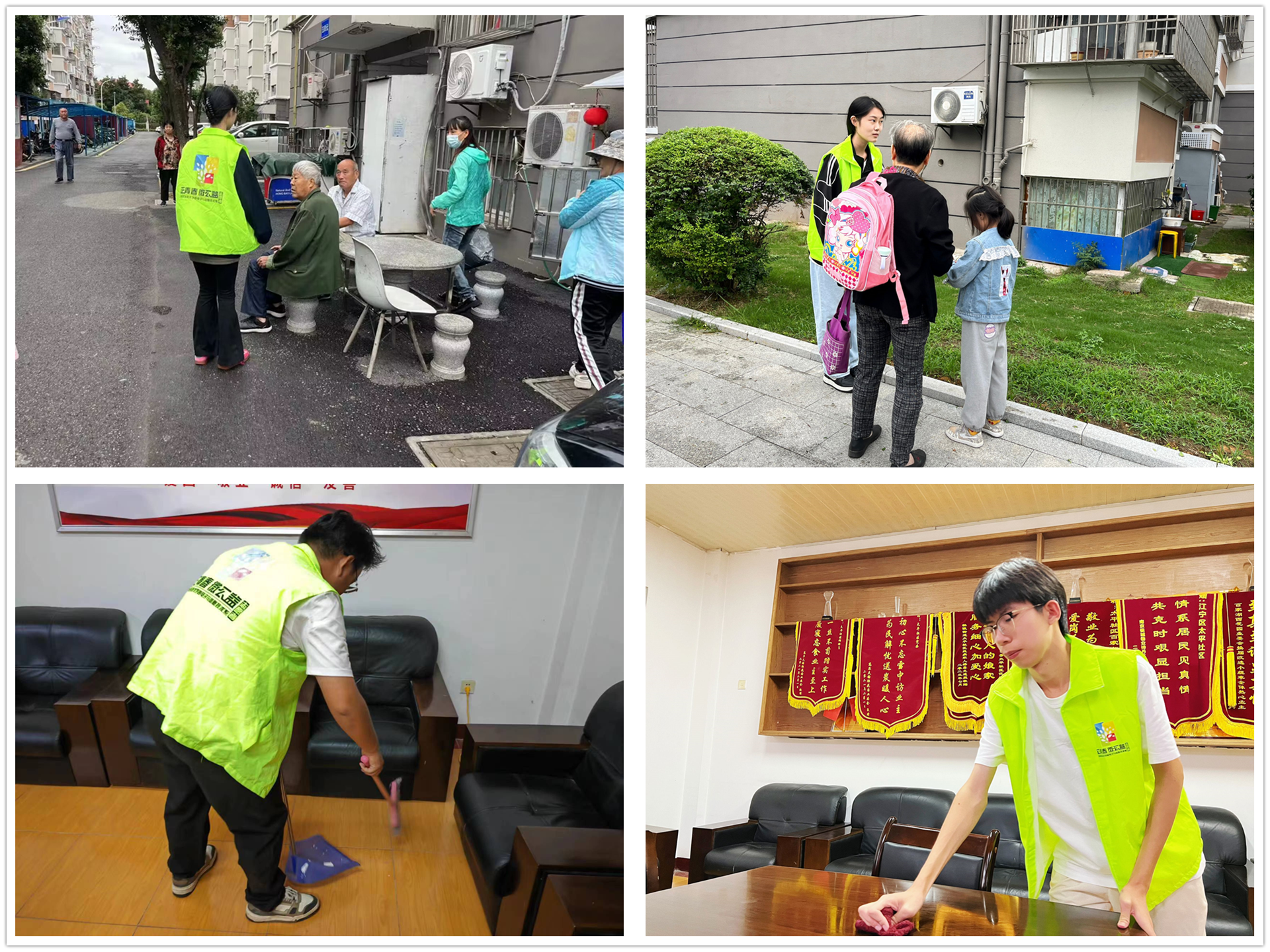 在太平社区党群服务中心,电子与信息技术系志愿者们开展清扫工作,他们拿起扫把、抹布把服务中心的卫生死角、台面污渍清理干净。劳动之余,志愿者们与社区老人进行了愉快的交流。他们耐心地与老人沟通分享生活中的趣事,得到了社区工作人员与居民的一致好评。