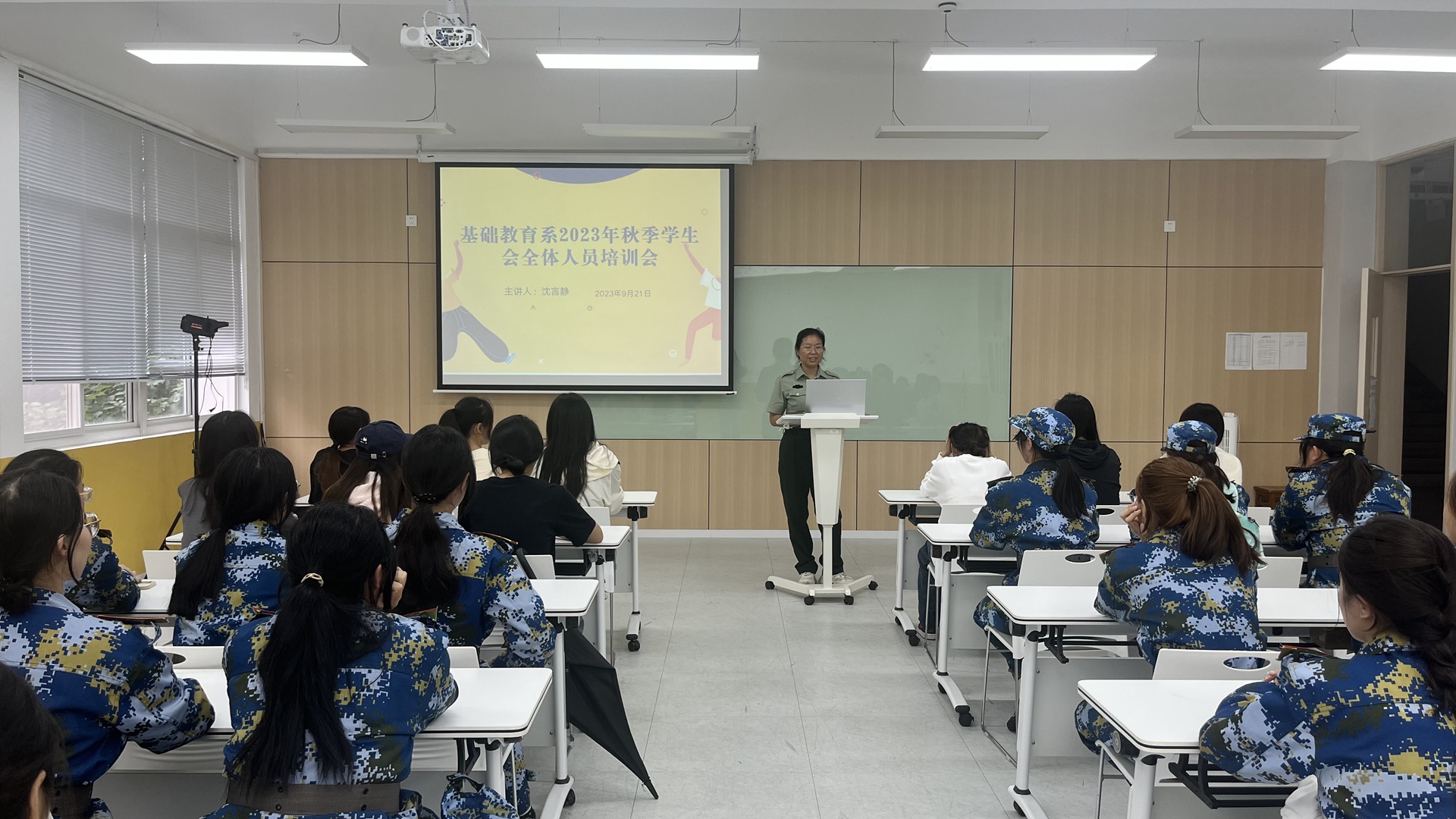 为进一步落实系学生会各自部门工作职责,加强学生干部队伍建设,更好地服务师生,树立良好形象,提升学生干部的学习能力和工作技能。基础教育系学生会于2023年9月21日在9205教室举行了秋季学生会工作培训会。本次培训由辅导员沈言静老师主持,基础教育系学生会全体人员出席本次会议。