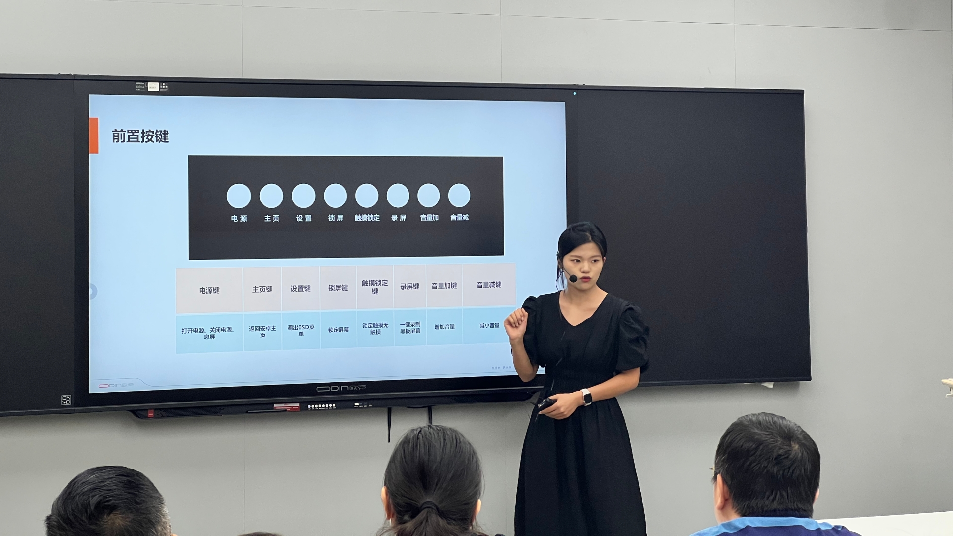 江苏欧帝电子科技有限公司讲师张力对智慧黑板的日常使用方法和注意事项进行了演示和详细介绍,艺术设计与建筑工程系王子烜老师结合日常授课、比赛录课等需要对教室内设备进行详细介绍和经验分享。培训现场的教师们就设备的使用等进行了提问。
