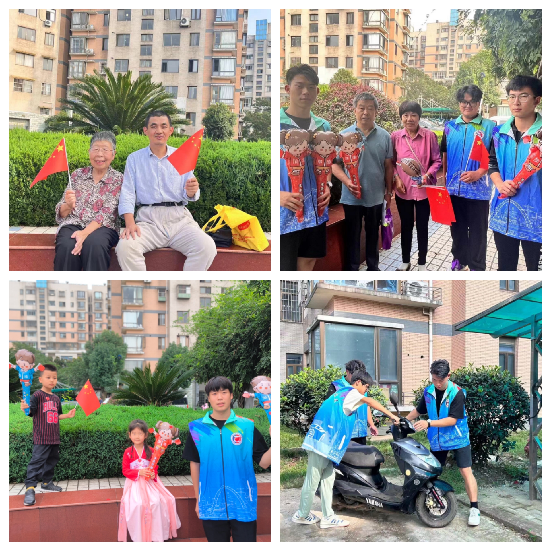 在晚会筹备过程中,汽车与机电工程系大学生志愿者团队充分发挥专业知识和技能,与社区工作人员一起组织、宣传了此次活动。除此之外志愿者们开展扶车清扫活动,营造整洁舒适的社区环境。通过制作宣传红旗、发放国庆元素礼品等形式向社区居民介绍中秋和国庆的由来及习俗,吸引了大批居民积极参与。