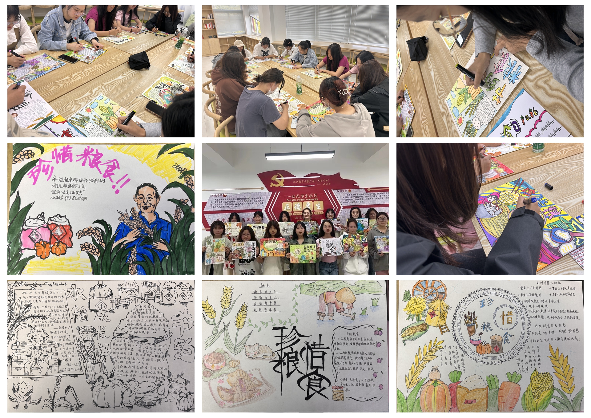 10月15日,基础教育系部分同学在一站式社区,参加绘制关于节约粮食的手抄报,同学们利用自己的专业技能,用画笔来展示,个人美德和价值追求,树牢节约意识,养成节约粮食的习惯。