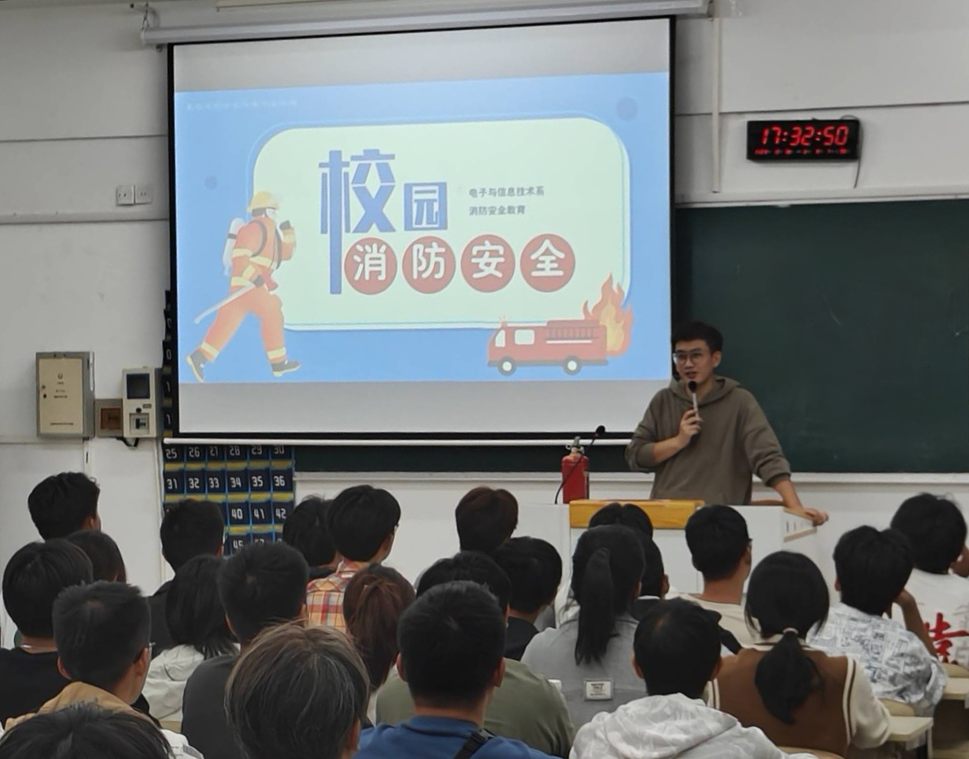 安全无小事,防患于未然。为深入开展“我为师生办实事”实践活动,进一步增强2023级学生的消防安全意识,提高自救防范能力,掌握正确、快速、有效的火灾逃生方法,10月18日下午,电子与信息技术系开展消防安全宣传教育活动。本次讲座活动由电子与信息技术系辅导员付磊为2023级新生进行讲解。