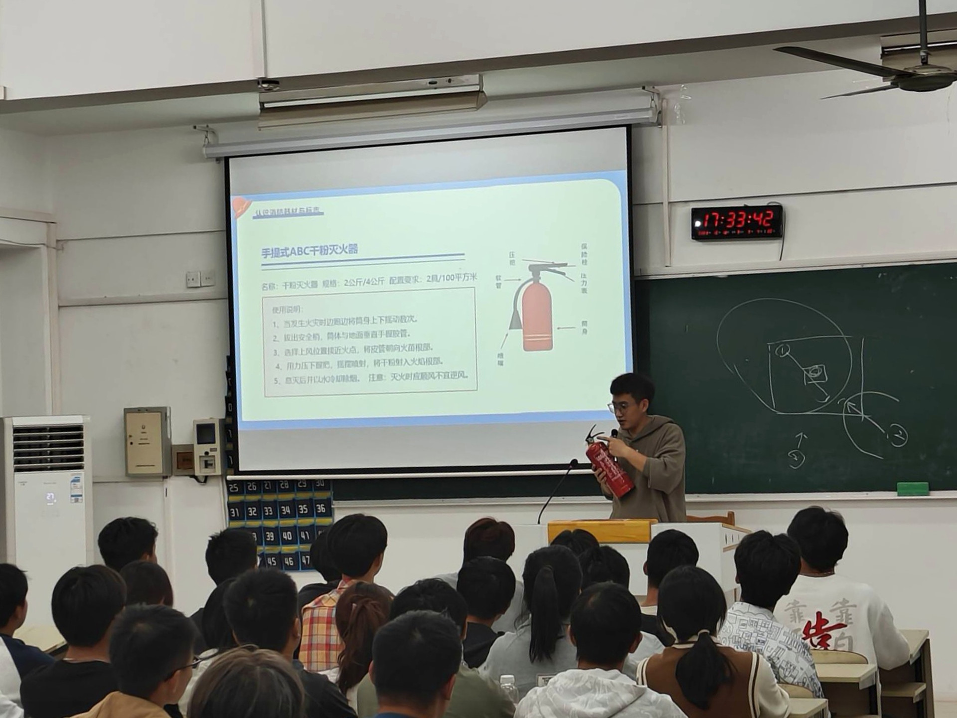 针对同学们防火意识较为薄弱的情况,付磊结合天博体育 火灾案例讲解了日常生活中火灾预防、火场逃生、初起火灾扑救、火灾报警等相关知识以及灭火器材的使用方法和注意事项。在集体观看消防警示教育片以及火场一线图片资料的过程中,学生们认识到火灾隐患的无处不在与火灾事故带来的严重危害,深刻感受到学习消防安全知识,预防火灾的重要性。