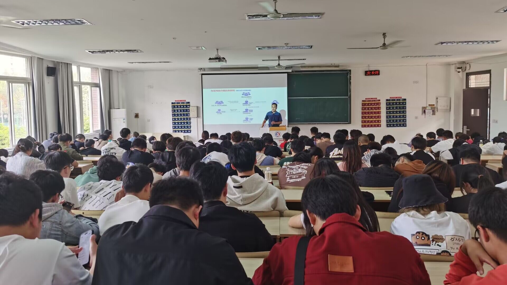 为进一步提高学生防范诈骗意识,加强学生安全教育,提高学生安全防范意识,保证学生财产安全。近期,汽车与机电工程系全体辅导员开展安全教育主题班会,并于10月19日下午两点半,邀请保卫处处长查理,副处长丁胜开展安全教育讲座。