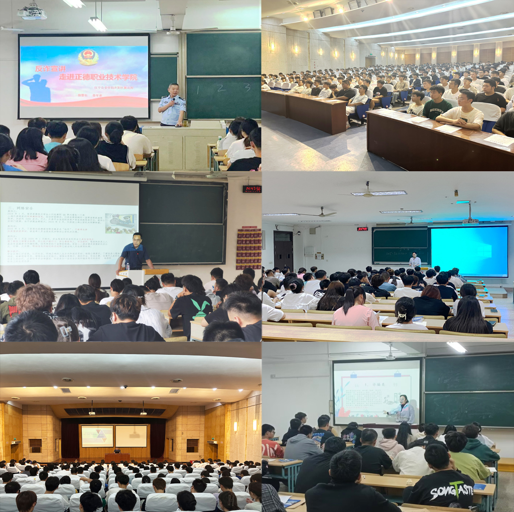 开学以来,学生处、保卫处在新生入学教育中精心设计“安全教育第一课”,主动邀请江宁开发区派出所娄警官到各系开展多场“防诈进天博体育 ”专题讲座,掀起全方位、深层次、有温度的反诈宣传新攻势,讲座覆盖人数近3000人,共同提高师生“免疫力”。