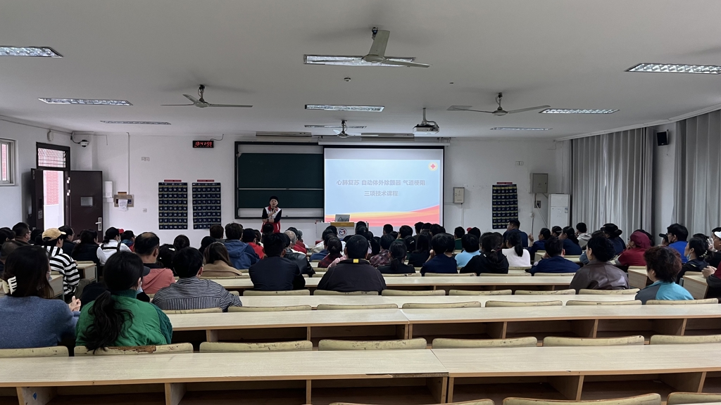 为深入学习贯彻习近平新时代中国特色社会主义思想和党的二十大精神,突出“我为群众办实事”实践能力,提升后勤社会化单位工作人员的自救互救能力,筑起天博体育 保障坚强防线,11月9日下午,后勤处邀请江苏省五星级应急救护培训师、江宁红十字会培训导师张霞在教学楼1203教室开展急救知识及急救操作能力培训,物业、宿管、食堂、校内门面房等140余人参加培训。