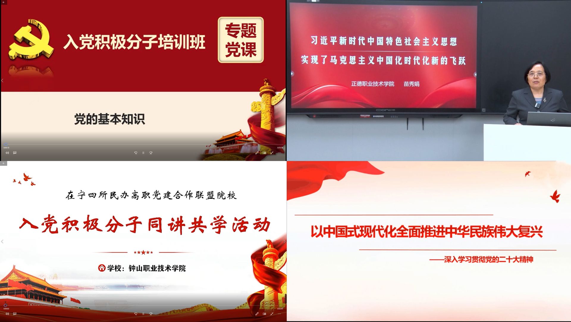 党校精心筹备本期培训班,本次培训由在宁四所民办高职党建合作联盟院校联合举办,邀请了金肯职业技术天博体育 思政部主任董建宏,钟山职业技术天博体育 马克思主义天博体育 院长、教授袁劲果,南京视觉艺术职业天博体育 思政教研室专职教授叶昌友以及天博体育 思政名师工作室首席教授苗秀娟四位老师,以视频辅导的形式,围绕党的理论知识等内容集中授课,使学员进一步端正了入党动机,加强了党性锻炼。同时,课后要求各党支部组织学员积极参加志愿服务等社会实践,鼓励学员努力用担当践行初心使命,早日成为一名合格的共产党员,为推进中国式现代化贡献青春力量。
