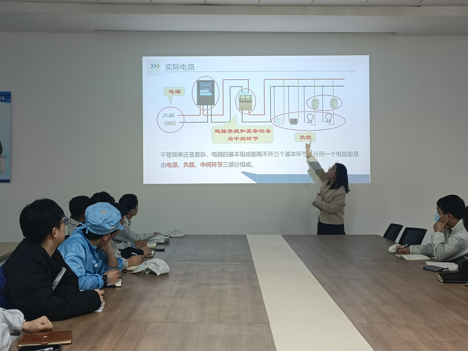 2023年12月7日下午,电子信息与技术系副主任(主持工作)刘佳带领电路基础课程组成员王丹、李倩、朱洁和王晓艳为格力电器(南京)有限公司控制器分厂开展电路基础知识专题培训。