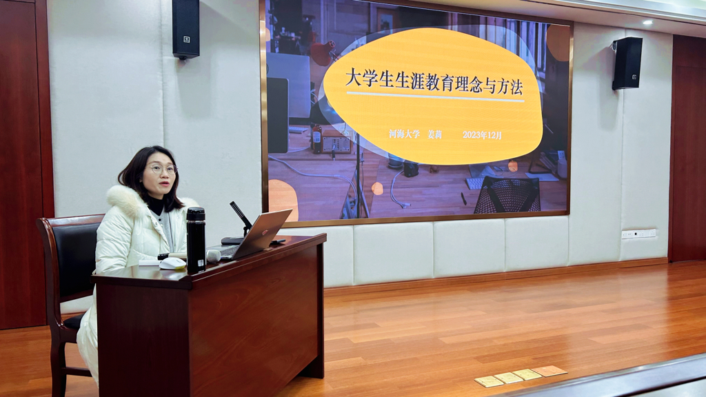全体学工人员参加了此次培训,培训由学生处副处长张宝华主持。本次活动邀请到了河海大学心理中心的姜莉老师进行培训分享,姜老师从事生涯教育工作十多年,其本人也多次获得省级职业生涯教育相关荣誉表彰,在全省生涯教育工作中具有一定的影响力。