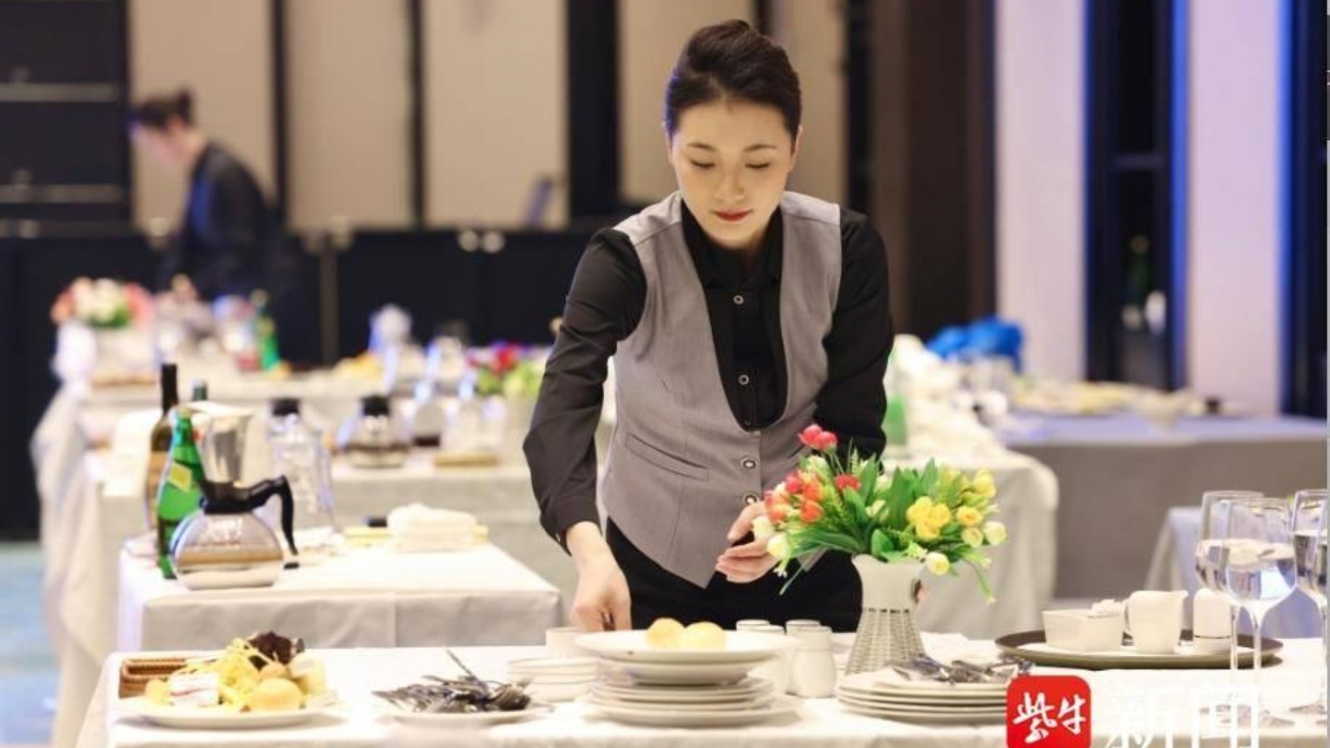 “酒店服务”赛项共分前厅接待、中餐服务、西餐服务三个模块。其中前厅接待为入住登记、退房离店、投诉或突发事件处理三大内容;中餐服务为主题宴会设计、宴会服务两大内容;西餐服务为休闲餐厅服务内容,充分考查酒店管理与数字化运营专业学生的核心技能和相关岗位职业素养。最终,天博体育 选手凭借扎实的基本功、出色的现场表现完成了赛项各项任务,赢得了评委们的认可。
