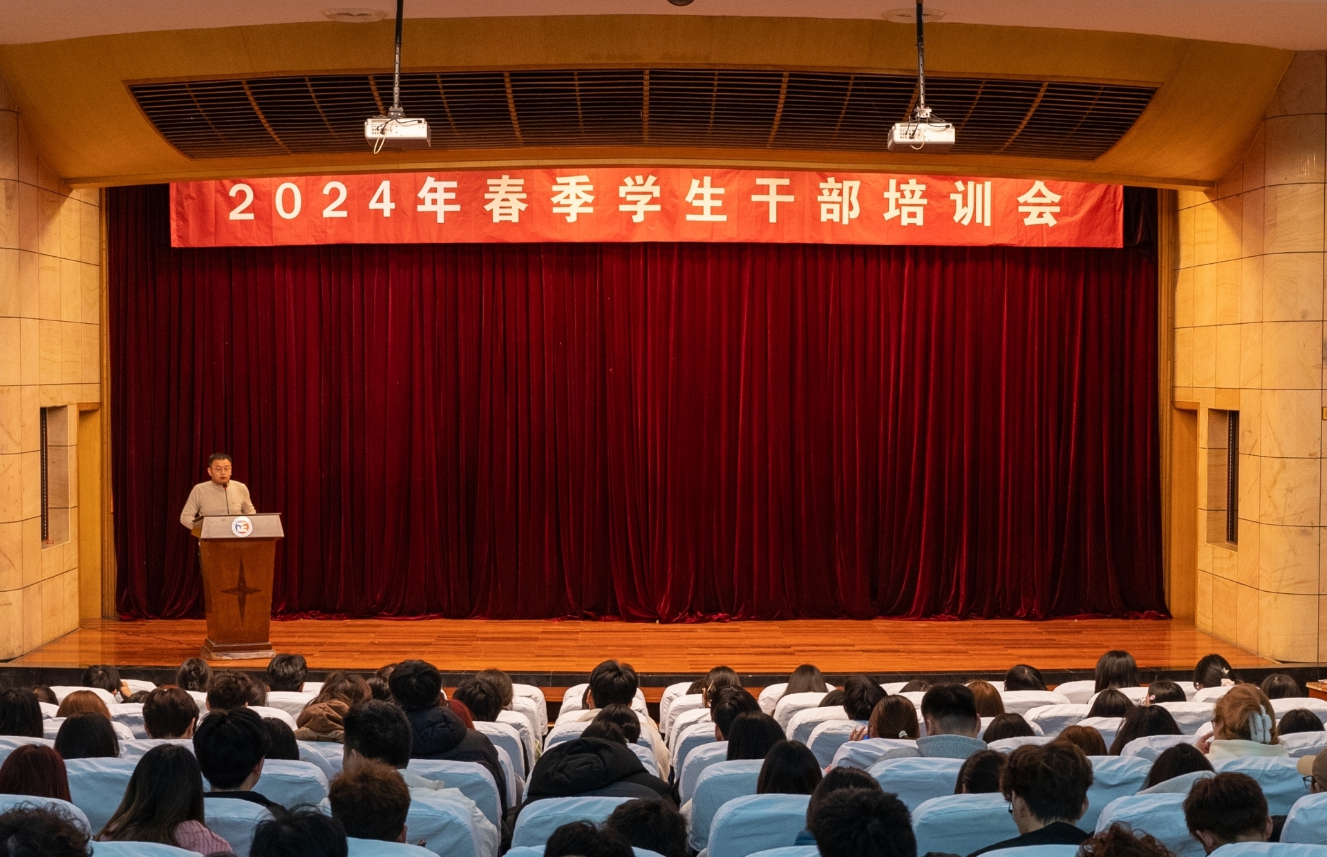 为进一步提高天博体育 学生组织队伍整体素质,充分发挥学生干部在大学生思想政治教育中的桥梁和纽带作用。进一步推动天博体育 学风建设和学生组织队伍建设。3月20日,天博体育 在报告厅召开2024年春季学生干部培训会。学生处处长祝佳俊、教务处处长王燕、院团委书记黄晓帆及院系学生组织负责人、班团干部近350人参加此次培训会,会议由团委副书记魏兴彪主持。