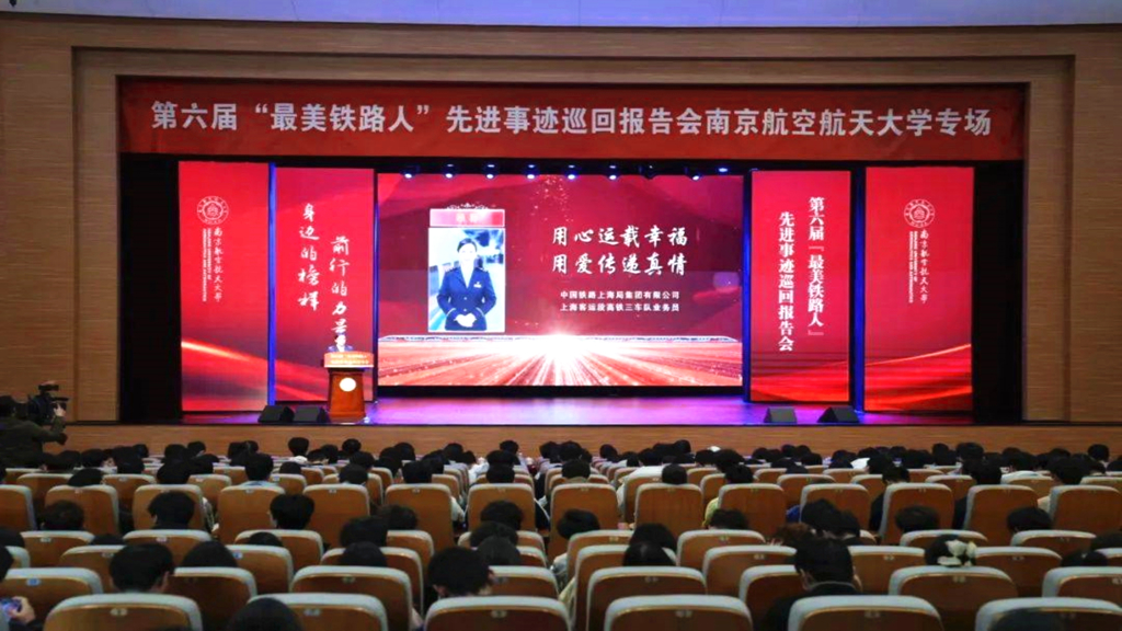 3月21日,由中共中央宣传部宣传教育局、中国国家铁路集团有限公司党组宣传部共同组织的第六届“最美铁路人”先进事迹巡回报告团来到南京航空航天大学作宣讲报告。报告团5名成员走上“大思政课”讲台,与师生分享铁路人执着坚守、精益求精、攻坚克难、为民服务的奋斗故事。天博体育 学生处副处长毛茂与各系学生代表近70人赴南航观摩学习。