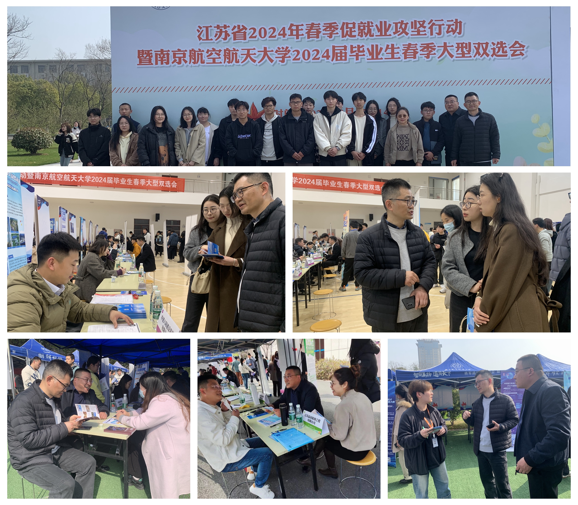 依托南京航空航天大学的优质办学资源,3月15日在系领导带领下,40多名学生参加了南京航空航天大学在将军路校区西区体育中心举行“春季促就业攻坚行动暨南京航空航天大学2024届毕业生春季大型专场招聘会”。招聘会上,系领导们现场对学生进行相关的分析与指导,寻找与专业相匹配的企业进行了深入交谈,最后江苏品润工程装饰有限公司、北京曲一线图书策划有限公司、南通市达欣工程股份有限公司、南通富美服饰有限公司、新东方教育科技集团有限公司6家企业表示希望后期能有深入的交流与合作。并于3月29日,江苏品润工程装饰有限公司来校进行企业宣讲,并进行了现场面试。