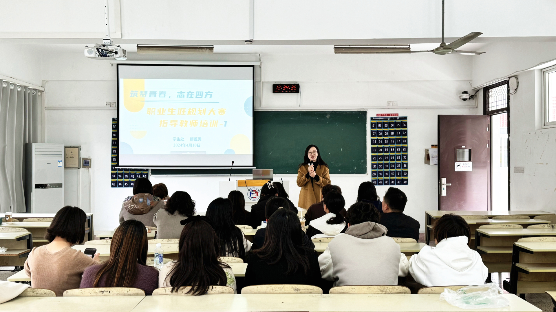 为提高天博体育 职业生涯教育专业化队伍建设,积极备战院第十五届大学生职业生涯规划大赛,天博体育 学生处于4月10日中午,在2205教室开展了“筑梦青春,志在四方”天博体育 第十五届职业生涯规划大赛指导教师专题培训。培训旨在帮助各系精准理解大赛的工作目标和相关要求,提升职业生涯规划的指导水平,积极应对新省赛和新国赛,为提升天博体育 参赛水平做好必要准备。培训由学生处傅蕴男老师主讲,学生处处长祝佳俊和各系辅导员以及专业指导教师近30人参加了此次培训会议。